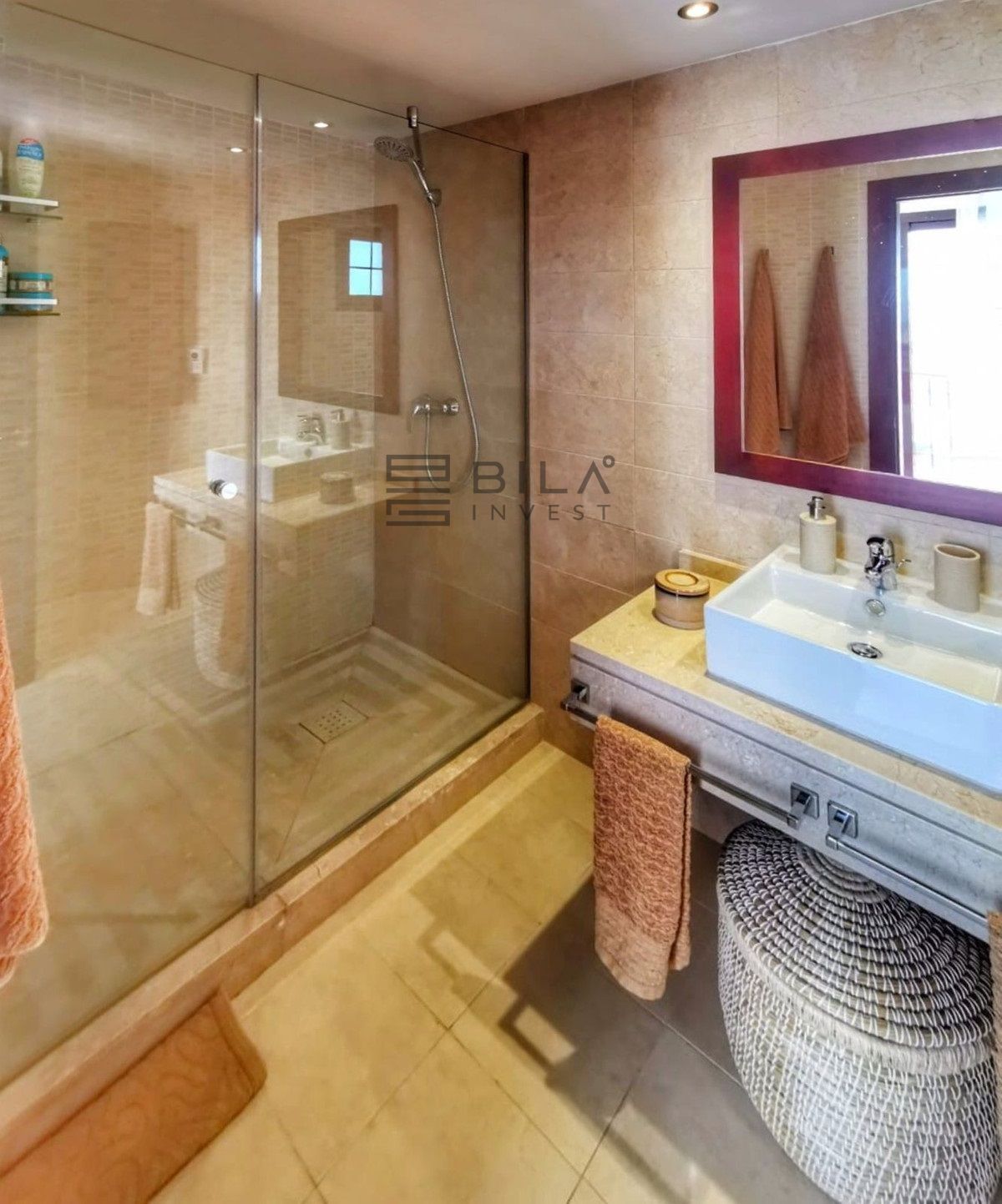 Este espacioso ático cuenta con 4 dormitorios de generosas dimensiones y 3 lujosos baños completos, además de un cómodo aseo de invitados. En la primera planta, un acogedor hall de entrada conduce a una elegante escalera, un aseo de invitados y un tranquilo dormitorio con baño en-suite. La cocina abierta se funde a la perfección con el elegante salón-comedor, que se abre a una amplia terraza, su oasis privado con amplio espacio para entretenerse o relajarse.
