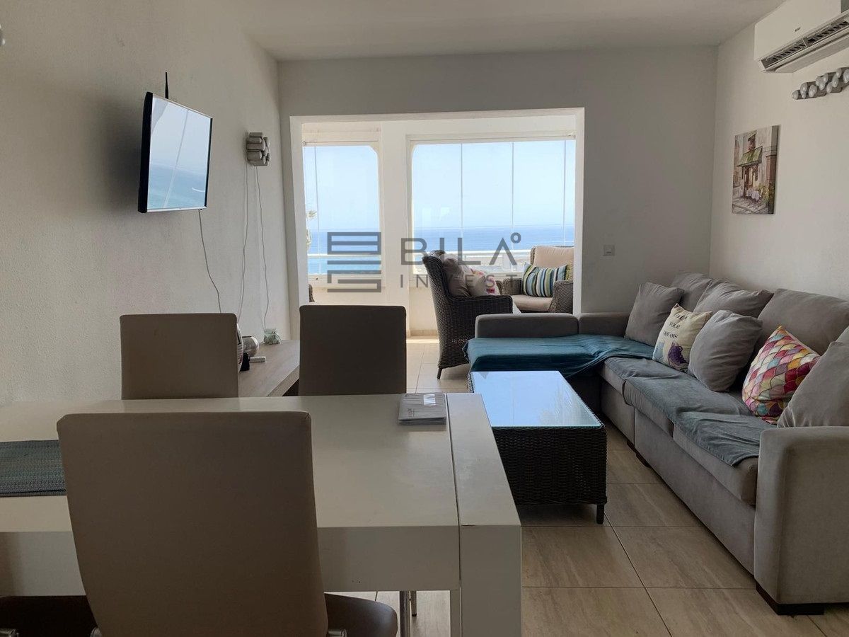La terraza se ha incorporado al apartamento con cortinas de cristal. Tiene vistas al mar, piscina y con pista de tenis. El complejo esta adaptado para persona con movilidad reducida.