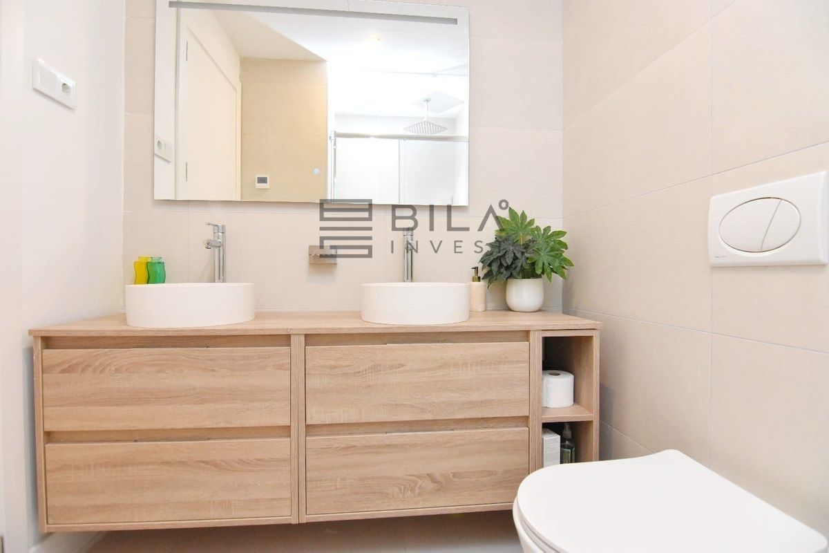 La distribución incluye 2 baños completos, uno de ellos en suite en el dormitorio principal, además de 2 plazas de garaje y un trastero. La vivienda cuenta con aerotermia, suelos porcelánicos de alta gama, orientación sur y sol durante todo el día, tanto en la terraza delantera como en la trasera.