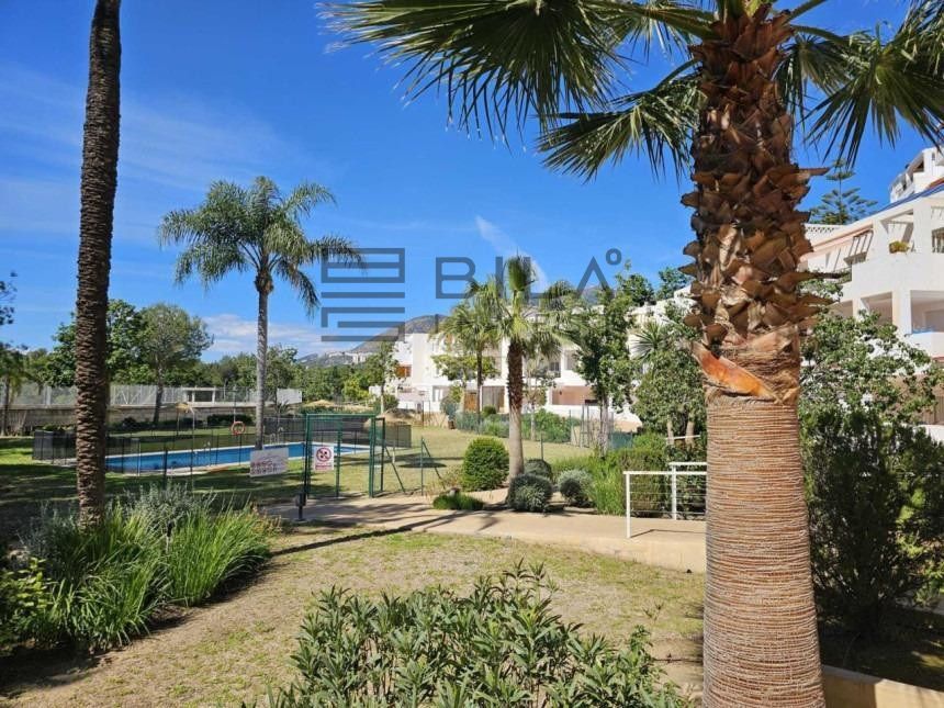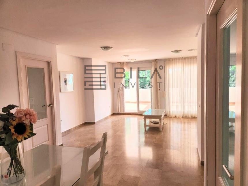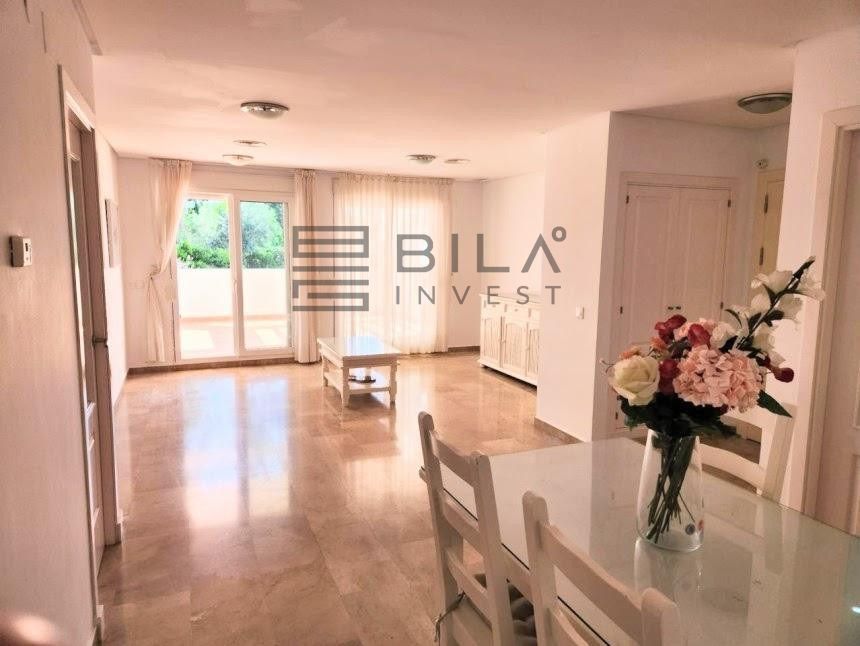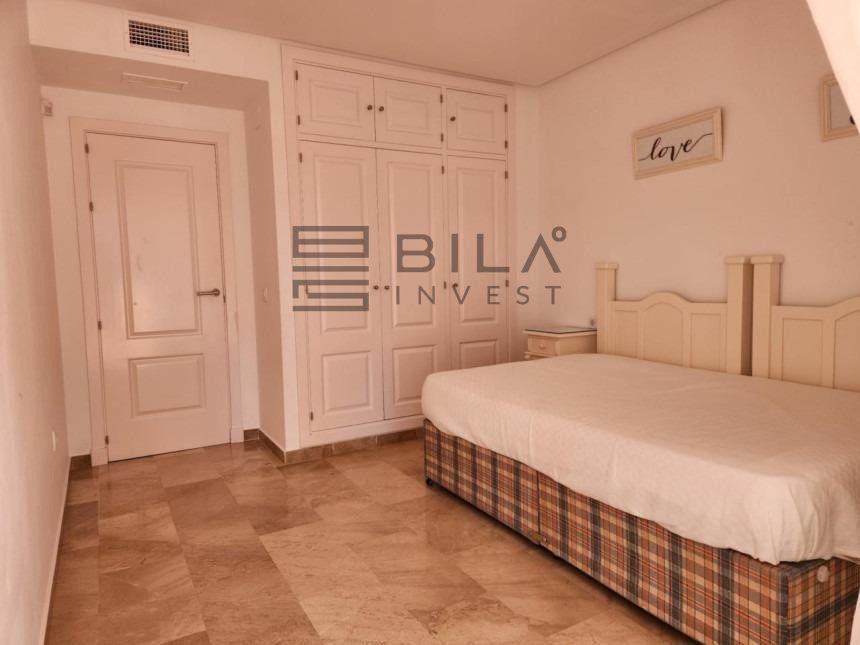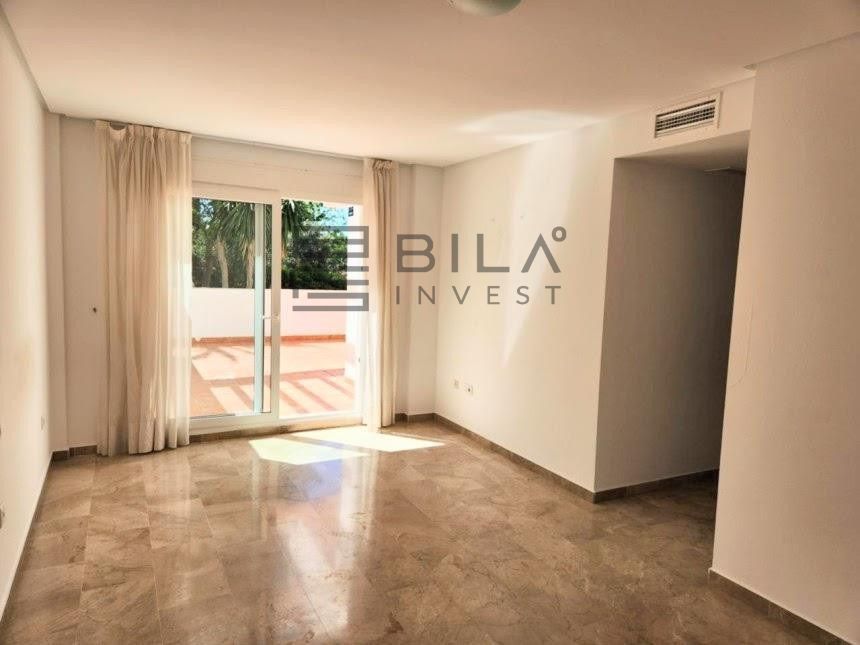 La vivienda, situada en planta baja, cuenta con 2 dormitorios, ambos con armarios empotrados y acceso directo a una espectacular terraza privada con vistas a la piscina. Uno de los dormitorios es tipo suite, lo que brinda mayor comodidad e independencia. Además, el amplio salón también se abre a la terraza, lo que permite una conexión perfecta entre el interior y el exterior, ideal para vigilar a los niños mientras disfrutan en la piscina o simplemente relajarte al sol.