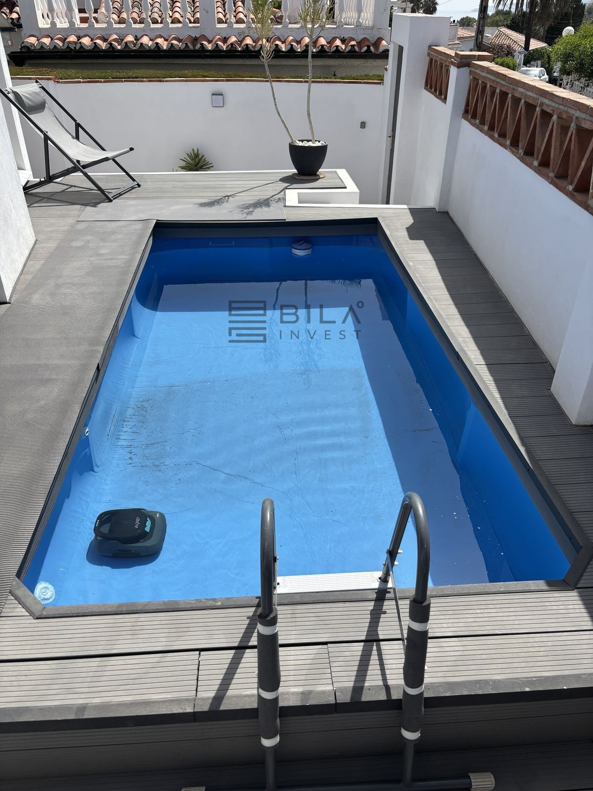 ¿Listo para tomar el sol? Salga a su piscina privada, un oasis de tranquilidad donde podrá relajarse después de un largo día. Las vistas al mar desde la azotea son simplemente impresionantes, ofreciendo un lugar perfecto para disfrutar de su café de la mañana o contemplar la puesta de sol con una copa de vino en la mano.