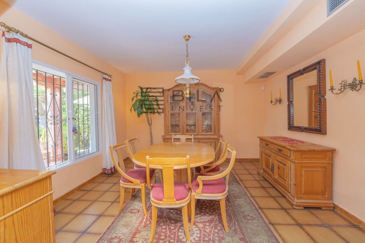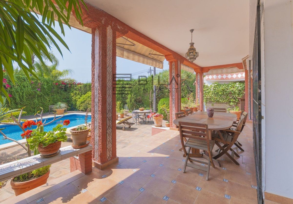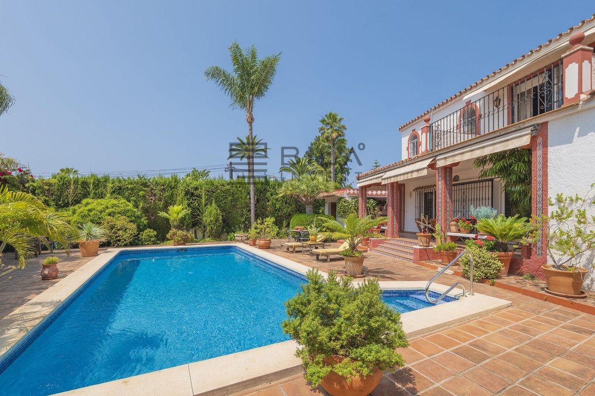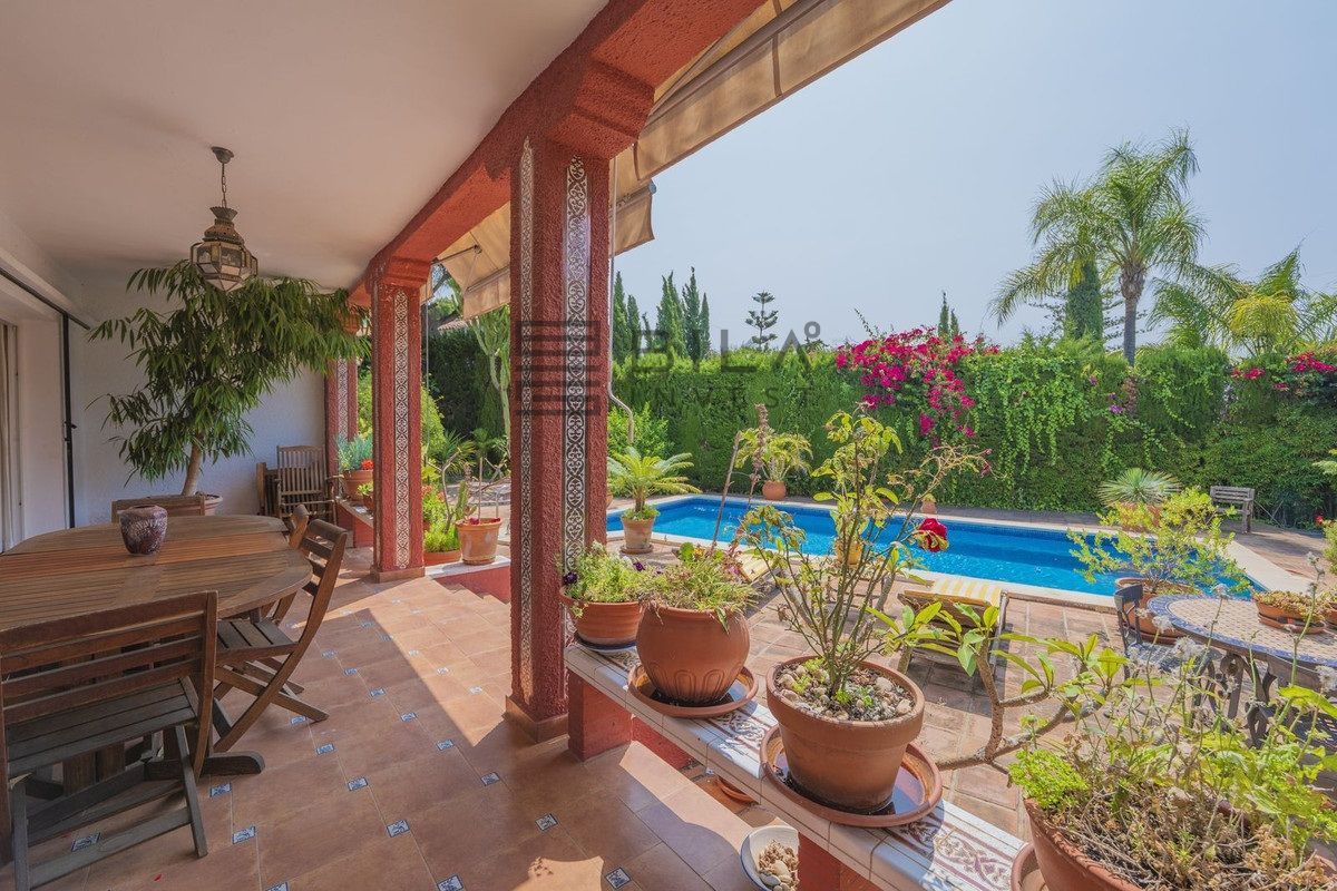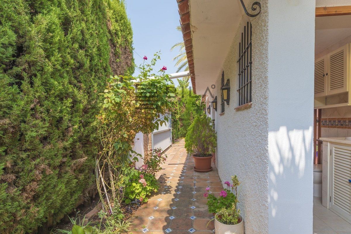 Estupendo Chalet independiente en la reconocida y consolidada zona residencial de El Mirador de Marbella. Una casa hecha para el disfrute y descanso, cerca de colegios, supermercados y con la A7 a un minuto en coche. De marcado estilo andaluz y sobre una parcela de 823m2, esta propiedad ofrece cocina con entrada independiente, un baño y el acogedor salón con comedor adyacente y salida a la terraza cubierta de 20m2; además dos dormitorios que comparten un baño completo con Sauna. En la planta superior, el dormitorio principal, con sala de estar, despacho y otra terraza, ésta descubierta, de 10m2 desde la que se divisa el mar. Este encantador Chalet con acento presume, finalmente, de un coqueta piscina y zona de barbacoa convenientemente situada y cubierta. Garage privado también cubierto. Encanto y detalles para esta propiedad con una situación envidiable, en zona urbana con variedad de servicios y oportunidades de ocio a mano, y aún así, con la tranquilidad y discreción que uno espera en una casa de este nivel.