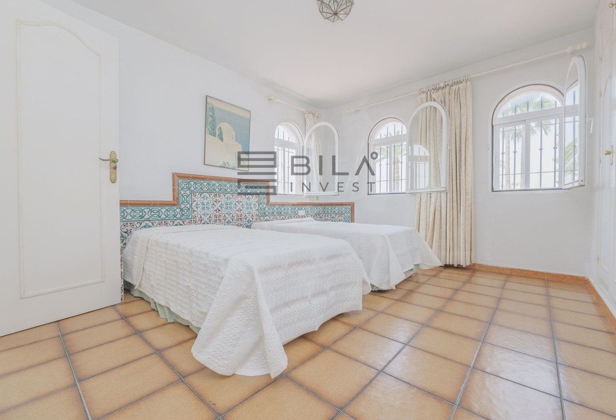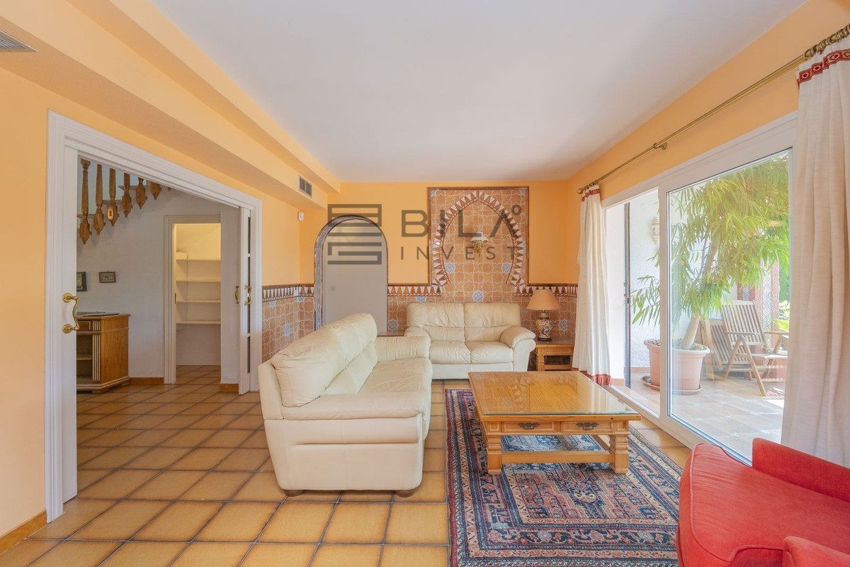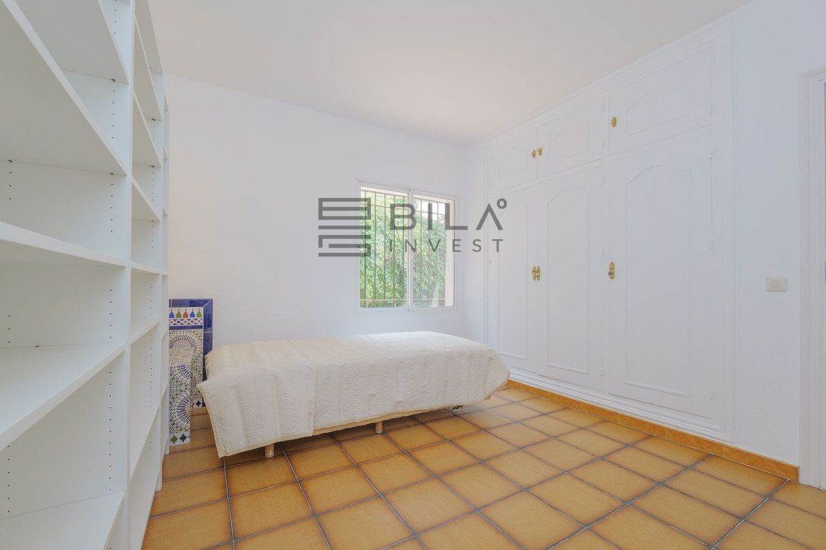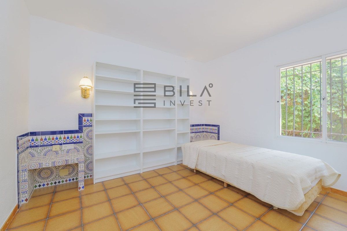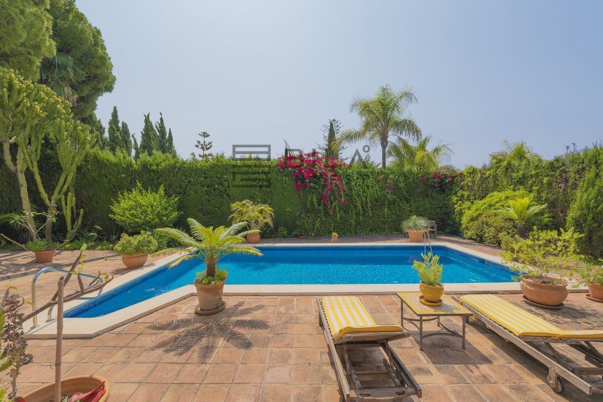 Estupendo Chalet independiente en la reconocida y consolidada zona residencial de El Mirador de Marbella. Una casa hecha para el disfrute y descanso, cerca de colegios, supermercados y con la A7 a un minuto en coche. De marcado estilo andaluz y sobre una parcela de 823m2, esta propiedad ofrece cocina con entrada independiente, un baño y el acogedor salón con comedor adyacente y salida a la terraza cubierta de 20m2; además dos dormitorios que comparten un baño completo con Sauna. En la planta superior, el dormitorio principal, con sala de estar, despacho y otra terraza, ésta descubierta, de 10m2 desde la que se divisa el mar. Este encantador Chalet con acento presume, finalmente, de un coqueta piscina y zona de barbacoa convenientemente situada y cubierta. Garage privado también cubierto. Encanto y detalles para esta propiedad con una situación envidiable, en zona urbana con variedad de servicios y oportunidades de ocio a mano, y aún así, con la tranquilidad y discreción que uno espera en una casa de este nivel.