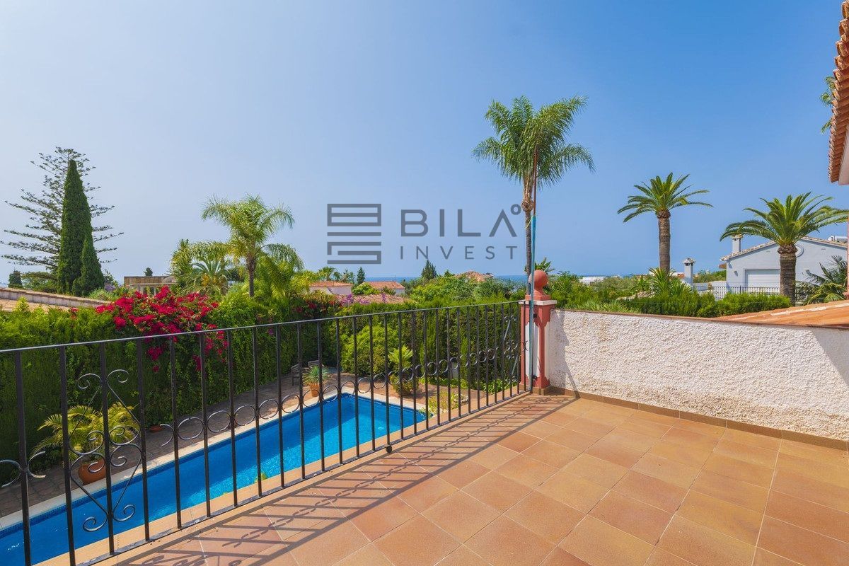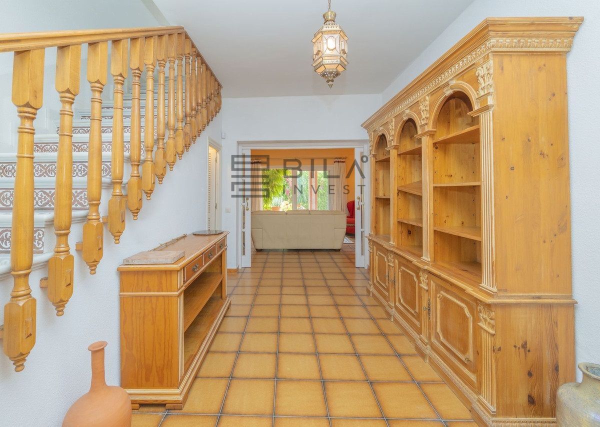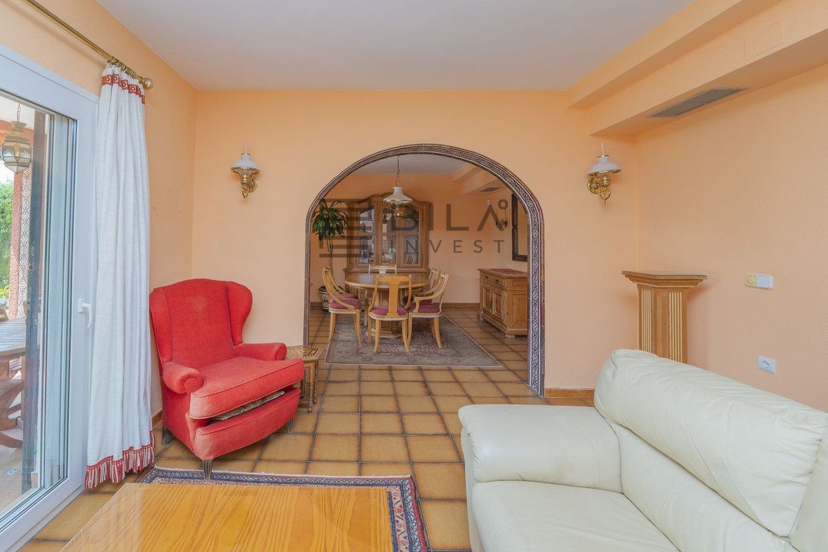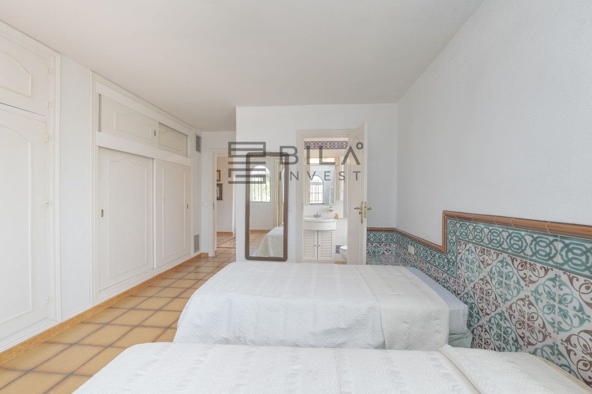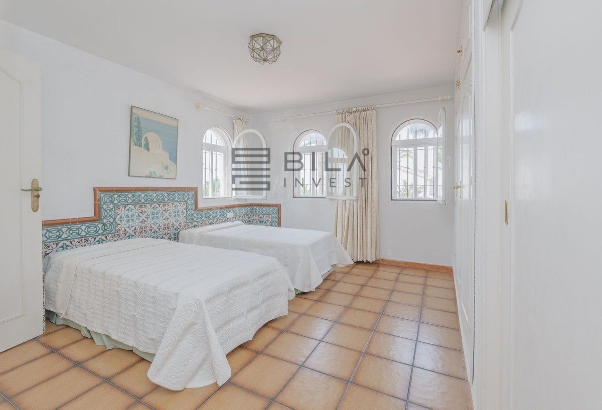 Estupendo Chalet independiente en la reconocida y consolidada zona residencial de El Mirador de Marbella. Una casa hecha para el disfrute y descanso, cerca de colegios, supermercados y con la A7 a un minuto en coche. De marcado estilo andaluz y sobre una parcela de 823m2, esta propiedad ofrece cocina con entrada independiente, un baño y el acogedor salón con comedor adyacente y salida a la terraza cubierta de 20m2; además dos dormitorios que comparten un baño completo con Sauna. En la planta superior, el dormitorio principal, con sala de estar, despacho y otra terraza, ésta descubierta, de 10m2 desde la que se divisa el mar. Este encantador Chalet con acento presume, finalmente, de un coqueta piscina y zona de barbacoa convenientemente situada y cubierta. Garage privado también cubierto. Encanto y detalles para esta propiedad con una situación envidiable, en zona urbana con variedad de servicios y oportunidades de ocio a mano, y aún así, con la tranquilidad y discreción que uno espera en una casa de este nivel.