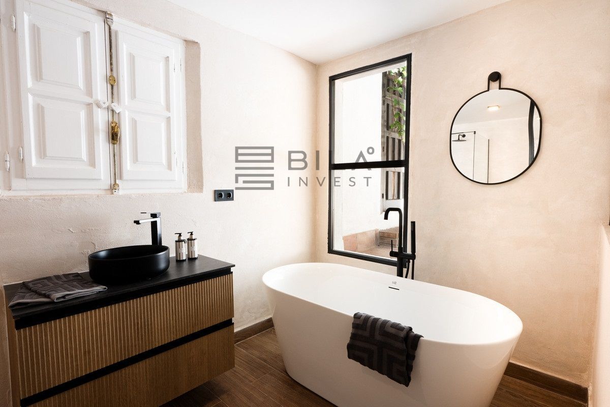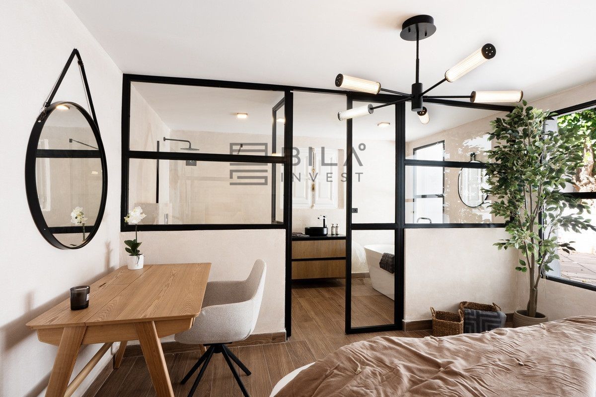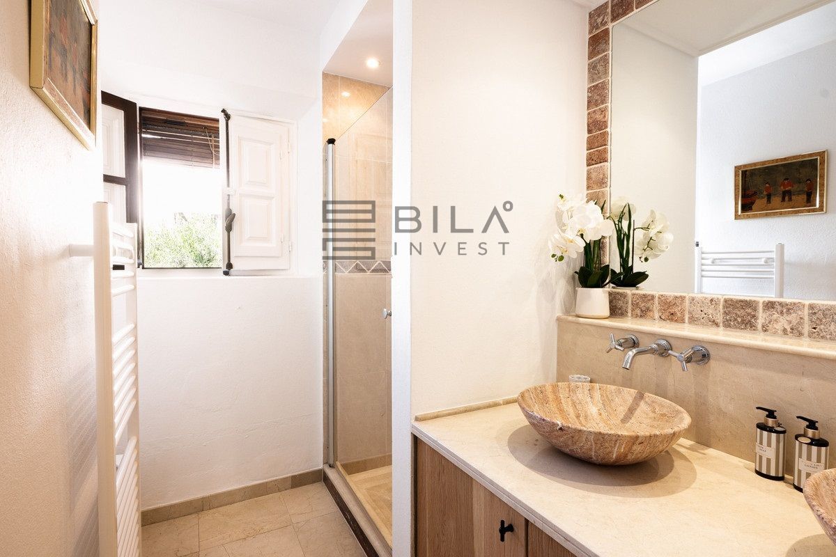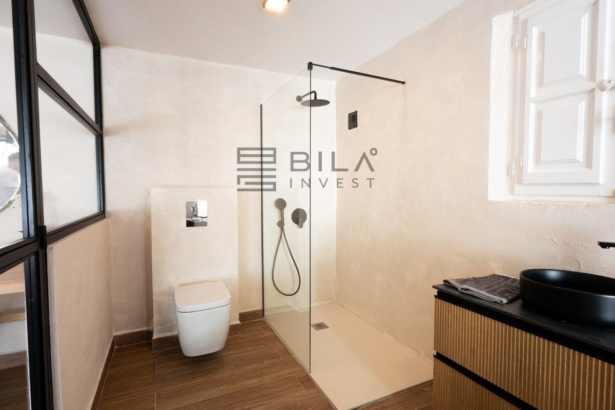 Distribuida en tres niveles, la vivienda ofrece amplitud, funcionalidad y detalles cuidadosamente renovados. En la planta baja, se encuentran dos dormitorios luminosos —uno de invitados y una suite principal— acompañados de baños de inspiración clásica y una zona de lavandería con amplio almacenamiento. La planta intermedia acoge la cocina principal, totalmente renovada y equipada con electrodomésticos de alta gama, junto a un acogedor salón con acceso directo a una terraza perfecta para desayunos al sol o cenas al aire libre. En la planta superior, la segunda suite principal dispone de baño privado y una amplia terraza orientada al oeste, donde disfrutar de puestas de sol y vistas a la vegetación que rodea la zona.