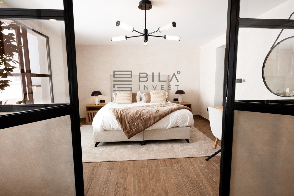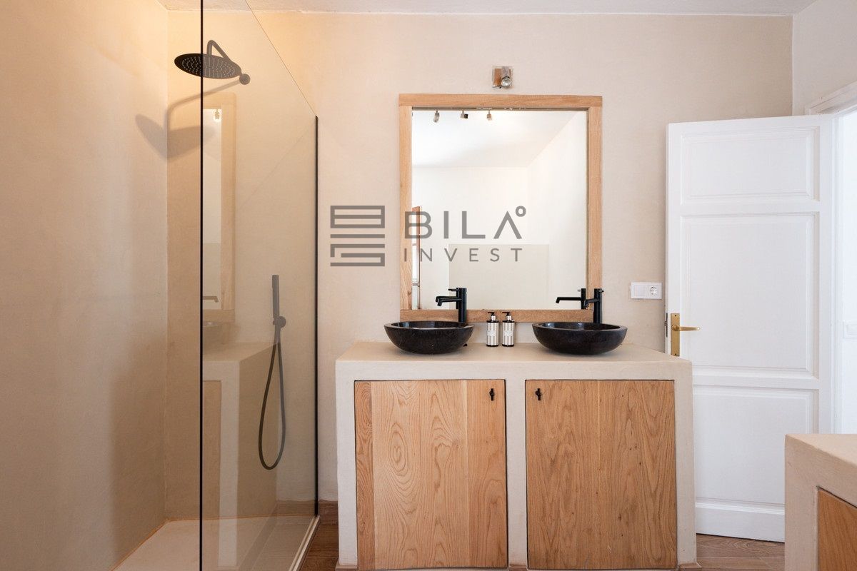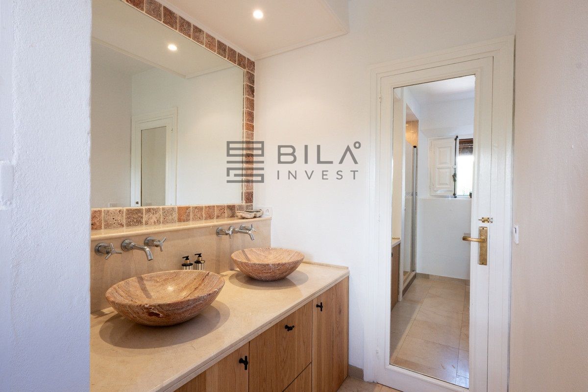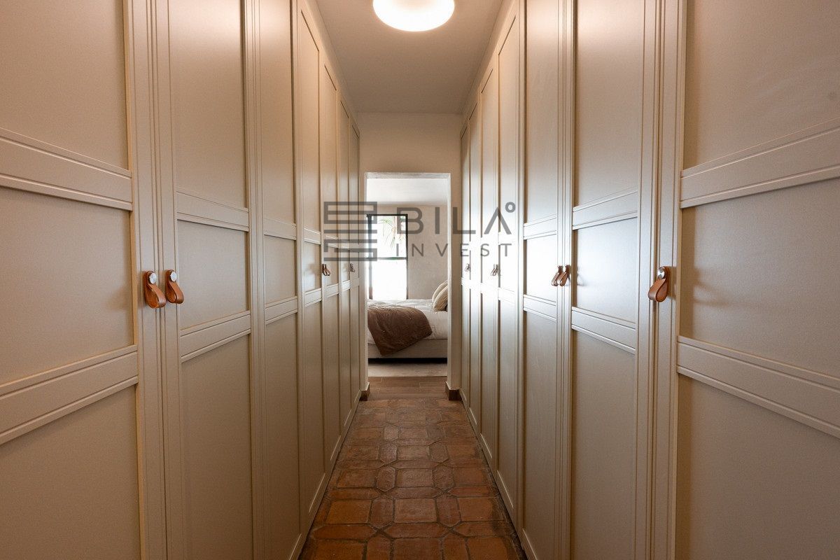 Distribuida en tres niveles, la vivienda ofrece amplitud, funcionalidad y detalles cuidadosamente renovados. En la planta baja, se encuentran dos dormitorios luminosos —uno de invitados y una suite principal— acompañados de baños de inspiración clásica y una zona de lavandería con amplio almacenamiento. La planta intermedia acoge la cocina principal, totalmente renovada y equipada con electrodomésticos de alta gama, junto a un acogedor salón con acceso directo a una terraza perfecta para desayunos al sol o cenas al aire libre. En la planta superior, la segunda suite principal dispone de baño privado y una amplia terraza orientada al oeste, donde disfrutar de puestas de sol y vistas a la vegetación que rodea la zona.