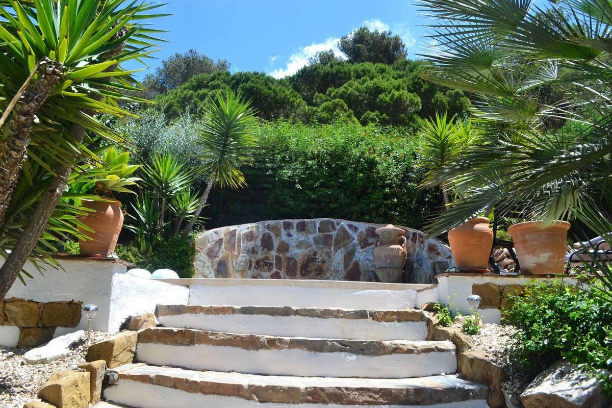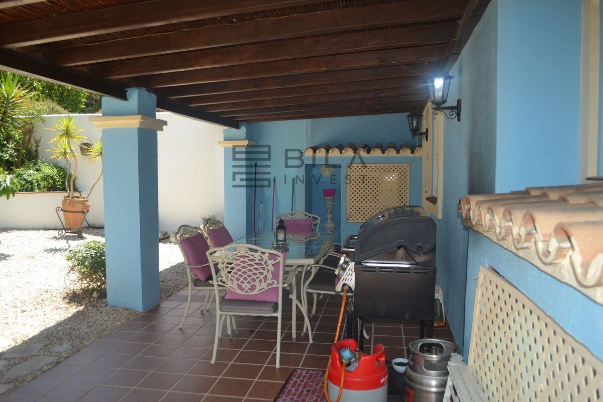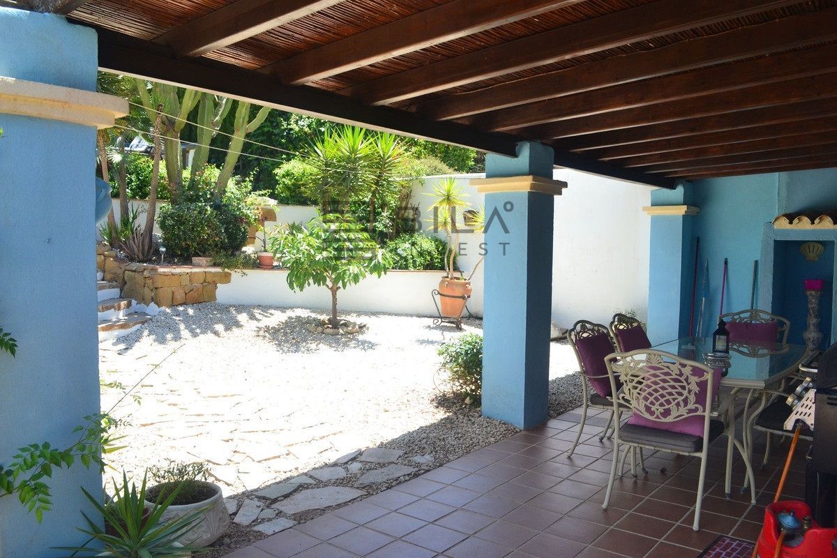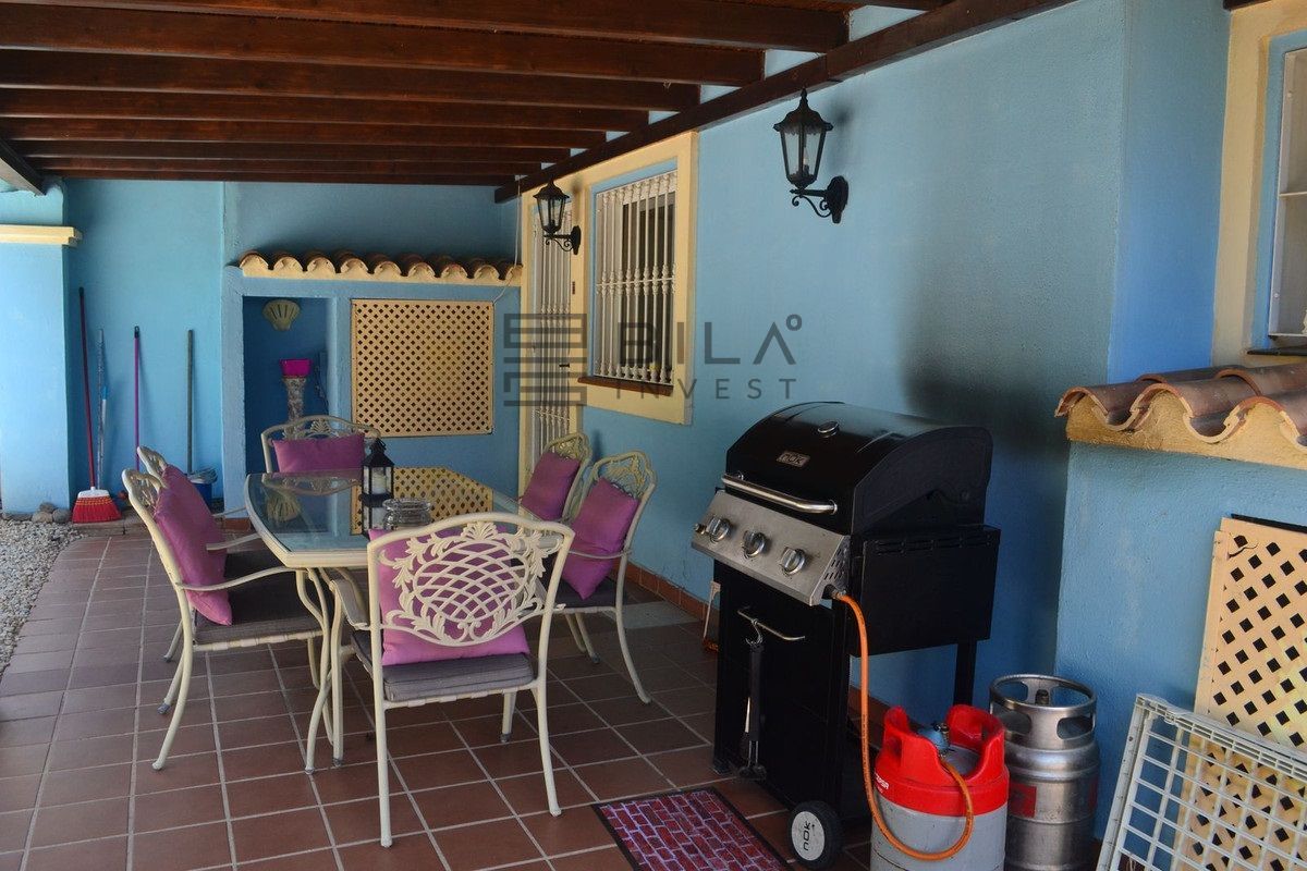 Afuera, en la parte trasera, tiene una bonita terraza cubierta con zona de barbacoa y trastero, un bonito jardín bien cuidado y de fácil mantenimiento con escalones hasta la piscina de inmersión y zonas de estar.