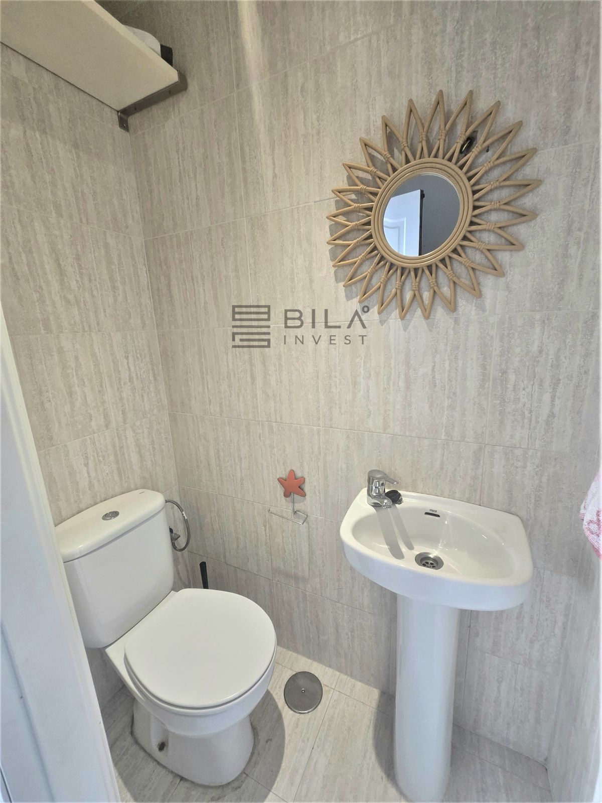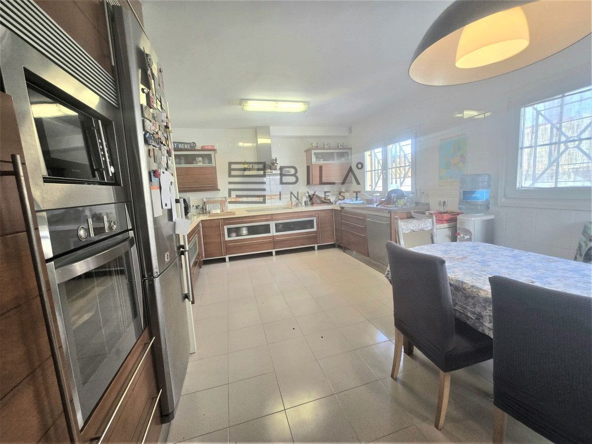 Planta baja: Una moderna cocina - comedor completamente equipada con amplio espacio de almacenamiento y acceso directo a una generosa terraza de aproximadamente 80m2. En esta misma planta, se encuentra un baño completo y un gran salón-comedor con salida a la terraza también, ofreciendo un entorno luminoso y abierto.