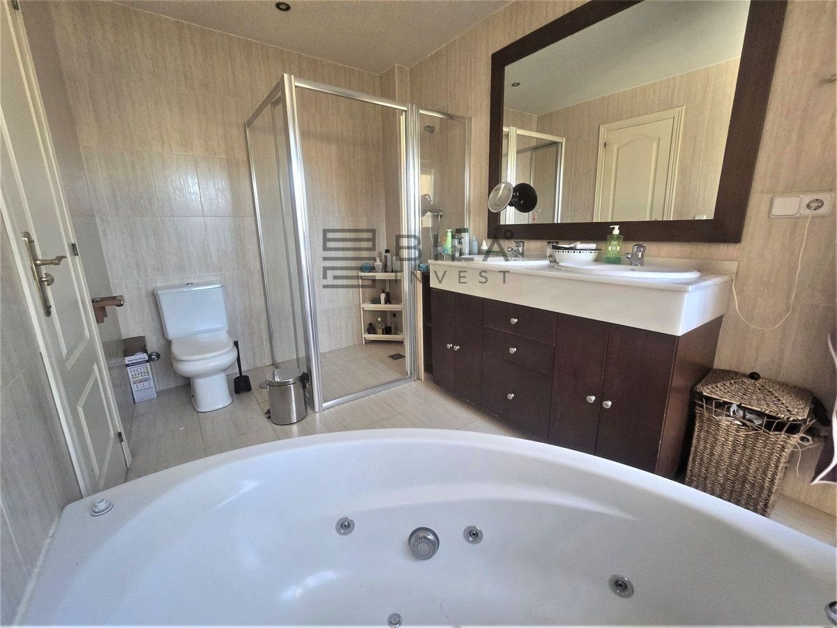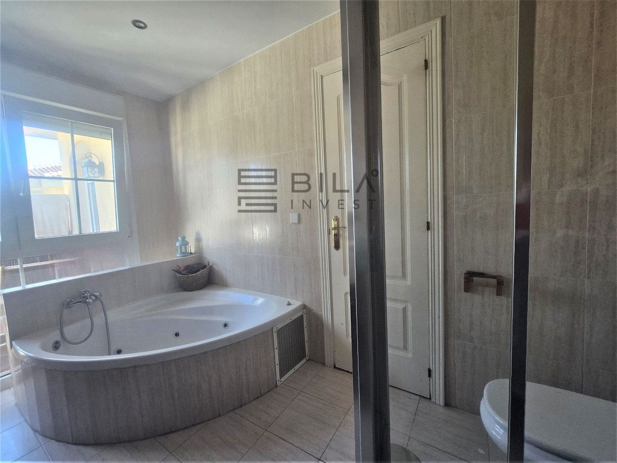 Planta alta: Tres dormitorios y dos baños. Originalmente la vivienda contaba con cuatro dormitorios, pero ha sido reformada para adaptarse a las necesidades actuales, dejando el dormitorio principal como una amplia suite con terraza propia, vestidor y un elegante baño con ducha y bañera de hidromasaje.