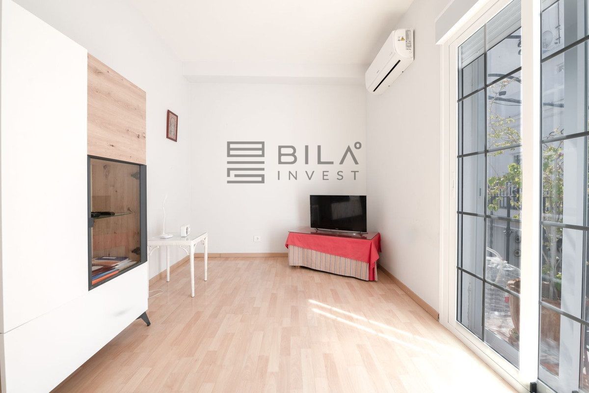 El acceso se realiza por el inicio de Calle Peral, una vía por la que también se puede acceder en coche. La propiedad es completamente exterior: el salón, con un amplio ventanal, da a Calle Peral, mientras que el cuarto de estar cuenta con un balcón orientado hacia Calle Castillejos. Gracias a su orientación este y suroeste, disfruta de una preciosa luz natural durante todo el día y una excelente ventilación.