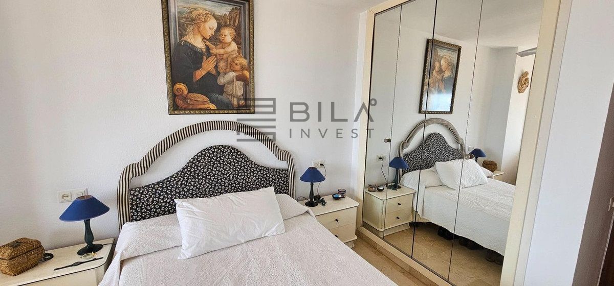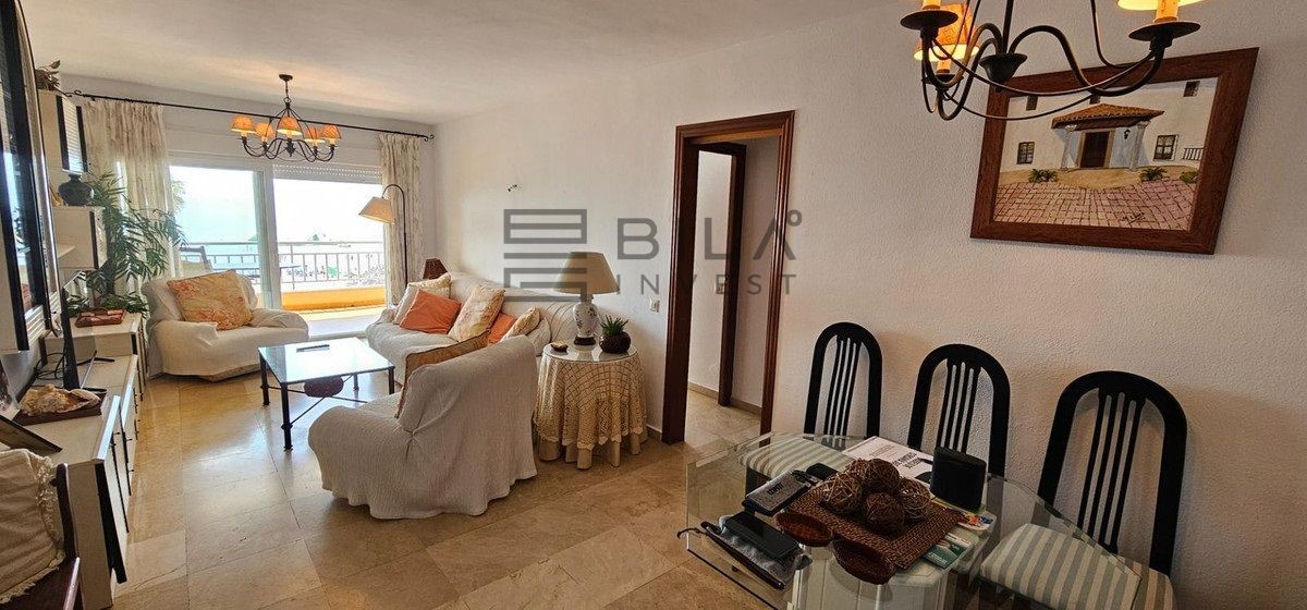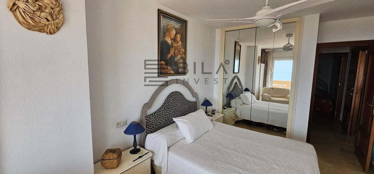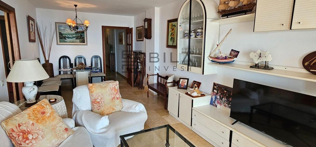 Vivienda de tres amplios dormitorios y dos baños, cocina independiente con lavadero y salón con amplia terraza con vistas impresionantes de la bahía de Fuengirola y el puerto deportivo.