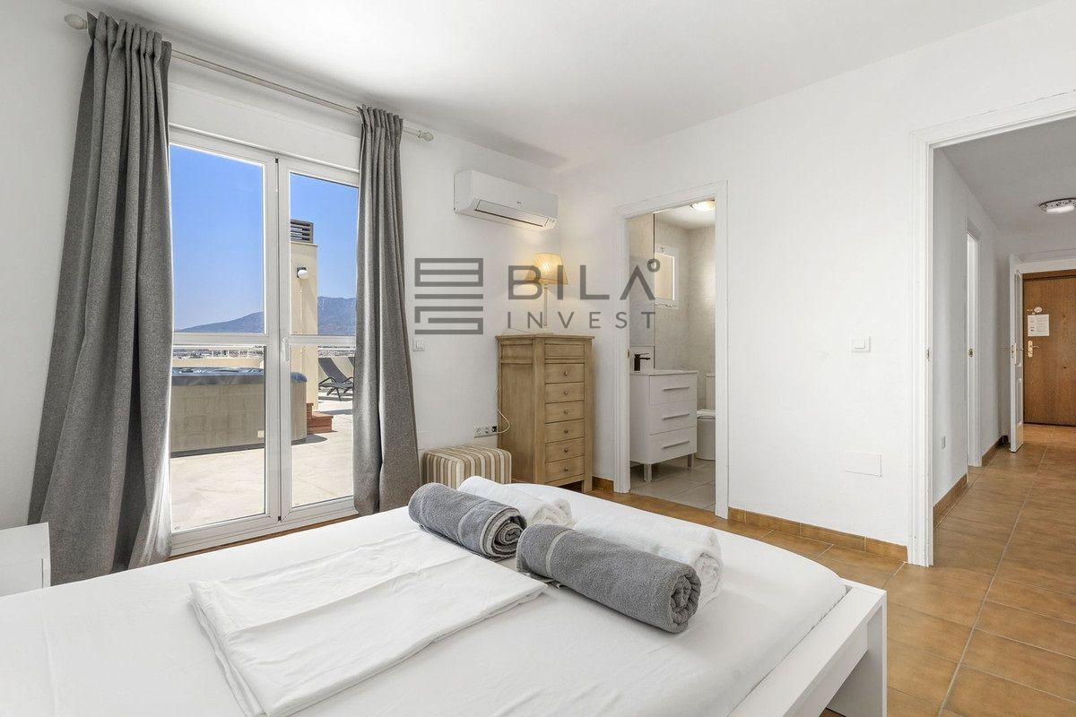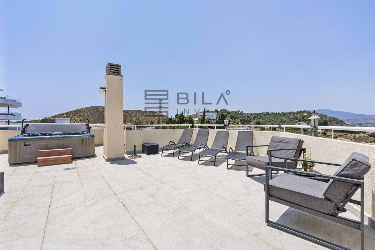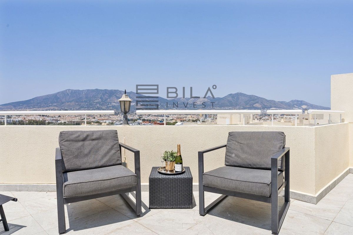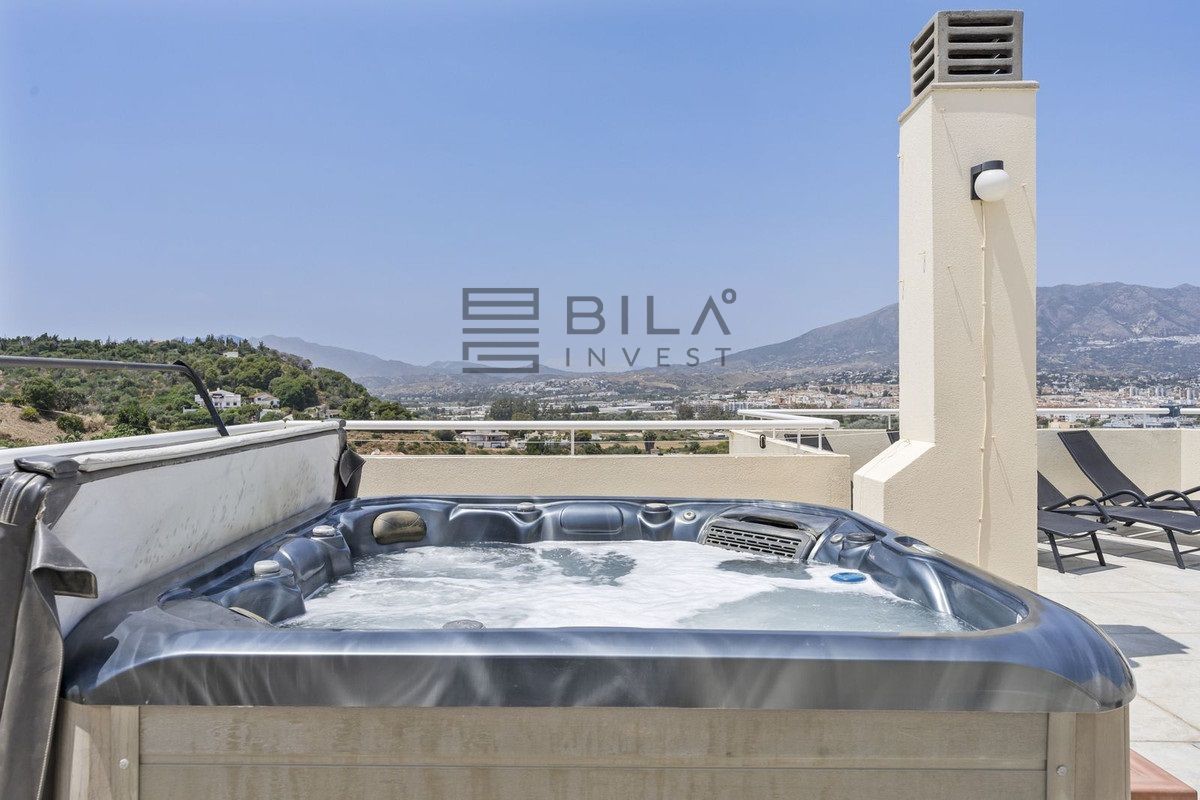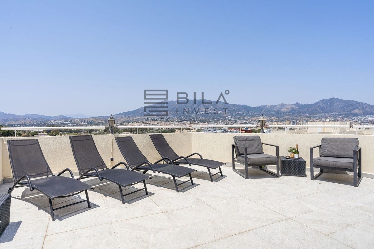Bienvenido a nuestro amplio ático de 4 dormitorios y 125 m² de terraza con jacuzzi, situado a un paso del Castillo de Fuengirola y del enorme centro comercial Miramar. Este impecable apartamento cuenta con una amplia cocina totalmente equipada con un espacio cerrado con lavadora, un amplio salón con un amplio sofá, mesa de comedor y un televisor grande, y acceso a una terraza de 460 grados con vistas panorámicas a las montañas y Fuengirola. Nuestro alojamiento tiene capacidad para 8 personas en 4 dormitorios. Dispone de piscina comunitaria abierta durante los meses de verano y garaje seguro. El jacuzzi estará listo para su llegada, al igual que la barbacoa para disfrutar de las buenas noches.