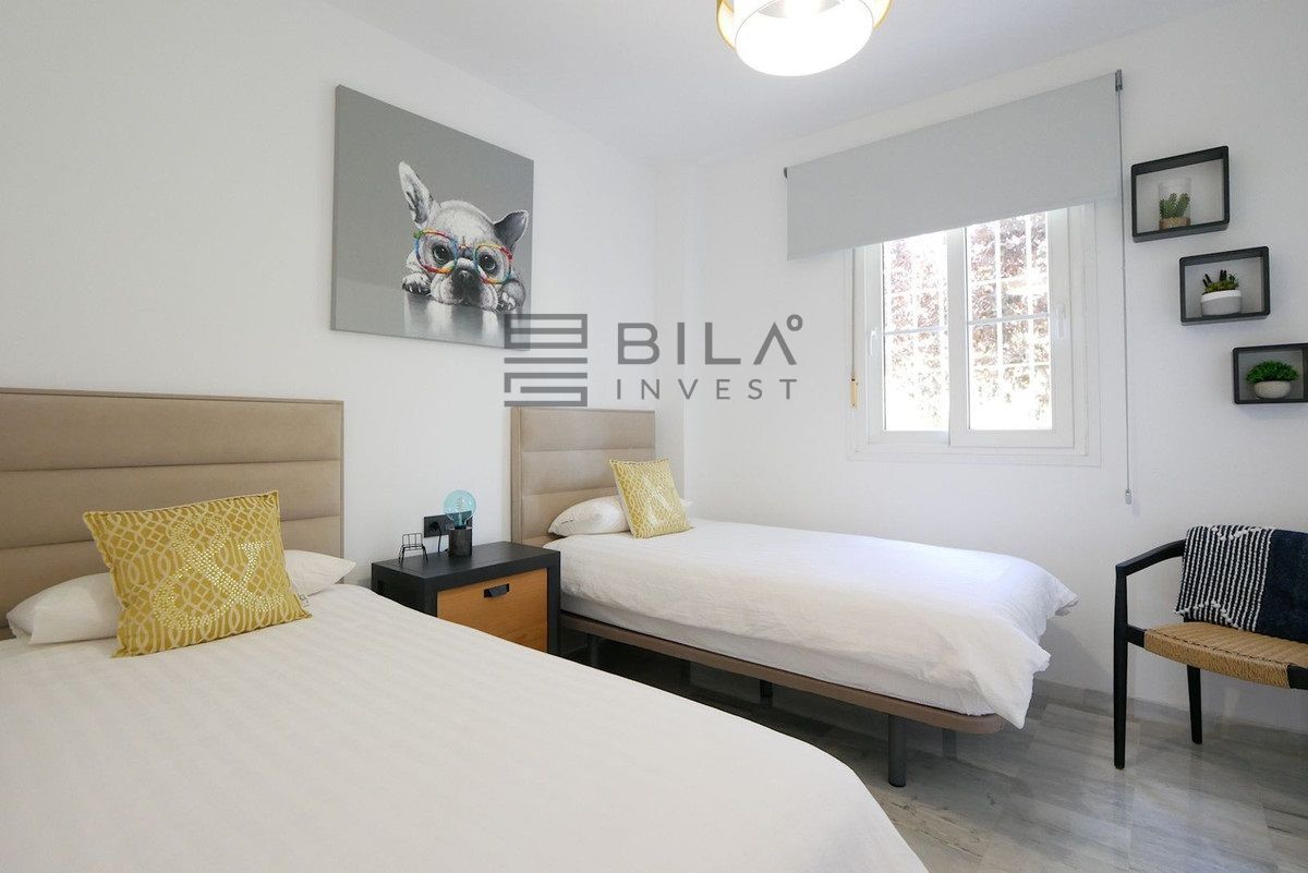 Esta excepcional propiedad se encuentra a solo 9 minutos a pie de las mejores playas de Marbella Este y del famoso puerto de Cabopino. Este apartamento, más grande de lo habitual, ha sido reformado con mucho gusto y con materiales de alta calidad, y se siente como si fuera nuevo. Los propietarios también han integrado ingeniosamente un tercer dormitorio, integrando la cocina en el amplio salón. Lo que también nos gusta de esta propiedad es su luminosa planta baja elevada, ubicada en la soleada esquina suroeste del edificio. El complejo es cerrado, con jardines comunitarios y una amplia piscina. El apartamento incluye una práctica plaza de garaje privada en el precio. Cabopino se encuentra en la costa este de Marbella, a unos 15 minutos en coche de Fuengirola y a 10 minutos del centro de Marbella. El complejo está enclavado entre el campo de golf, las playas y el puerto. Recomendamos encarecidamente una visita; estamos disponibles los 7 días de la semana.