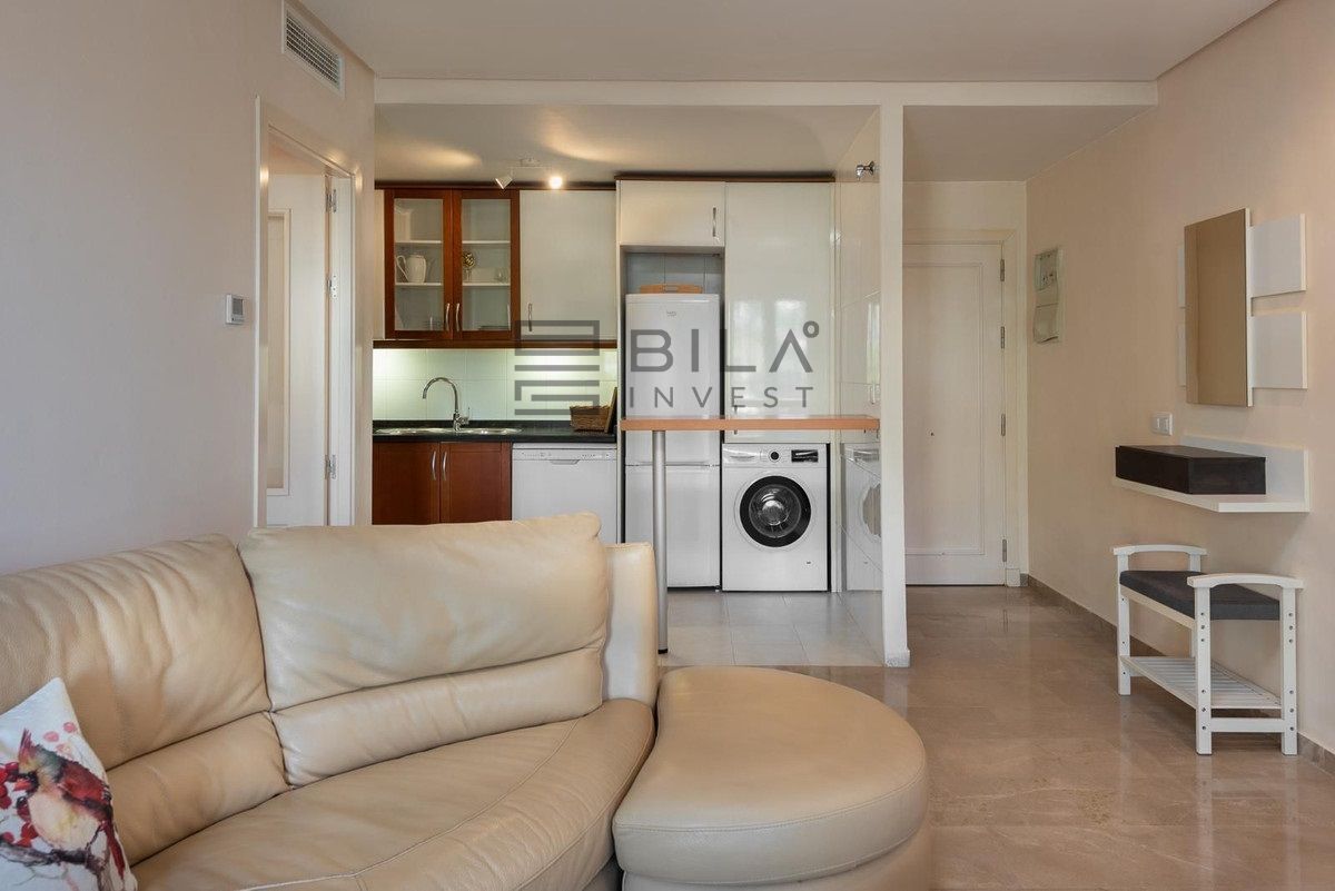 Conectividad y servicios cercanos refuerzan la conveniencia de esta compra: supermercados, centros de salud y transporte público en un radio corto, con acceso rápido a la autopista y a las principales playas de la zona. Las dos habitaciones ofrecen soluciones flexibles, ya sea como dormitorio principal y despacho, o bien como habitación de invitados, aumentando el atractivo para parejas que necesiten un segundo dormitorio o pequeña oficina en casa. La combinación de piscina, zonas verdes y vigilancia de accesos aporta una experiencia residencial cómoda y segura.
