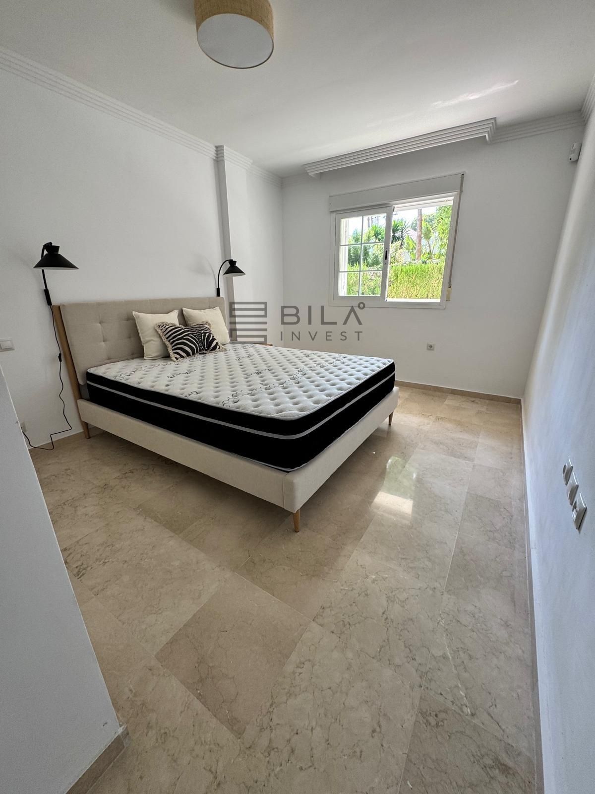 Disfrute de calefacción por suelo radiante en los baños, aire acondicionado eficiente, tres amplios dormitorios, dos baños impecables y una terraza privada con acceso directo a unas atractivas piscinas. Otras ventajas adicionales son el trastero y la plaza de aparcamiento privada. Ubicada en la tranquila y frondosa Urbanización Las Lomas del Río Real, esta ubicación privilegiada ofrece fácil acceso a la playa, a los mejores campos de golf, a las tiendas de La Cañada, al animado centro de Marbella y a las mejores escuelas, combinando tranquilidad y conectividad.