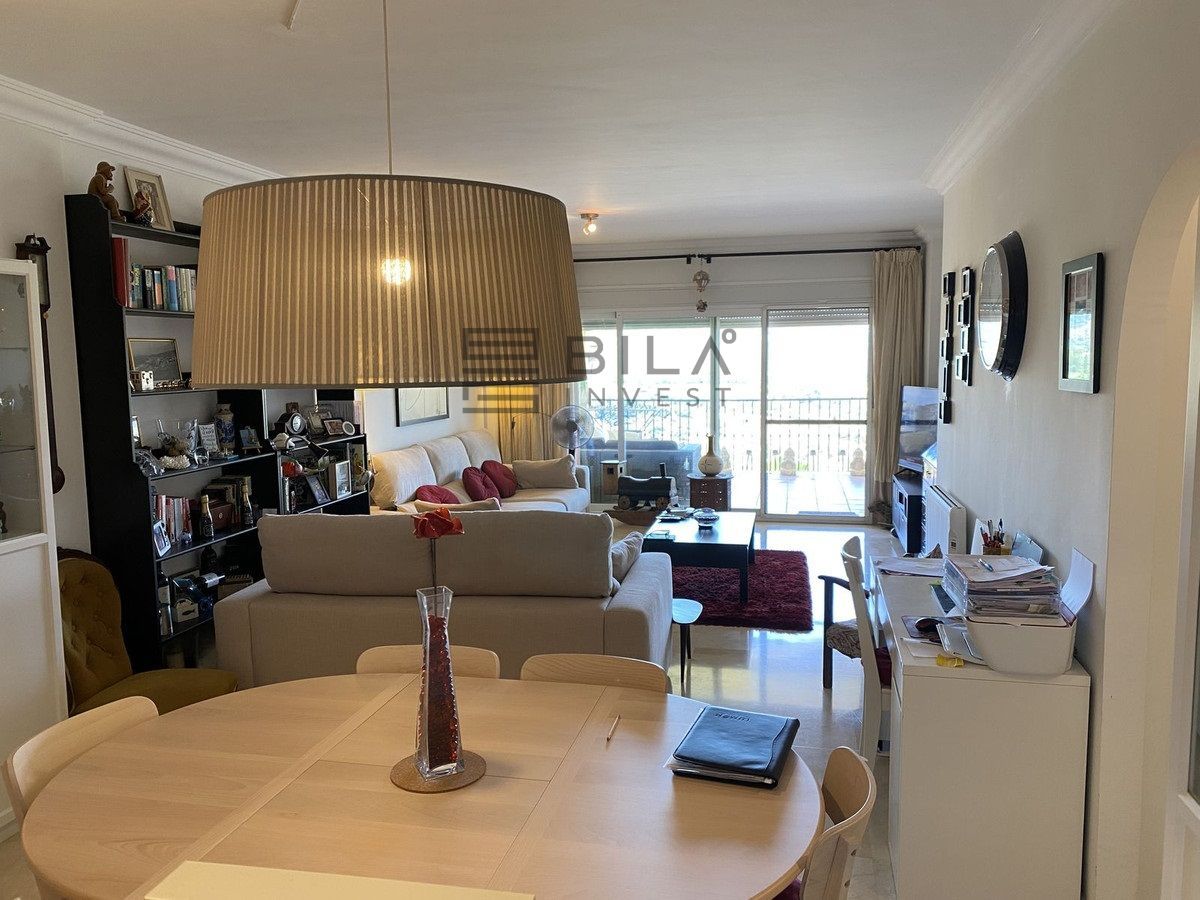 Recibidor con trastero que da acceso al luminoso y espacioso salón-comedor con puertas correderas triples que dan a una gran terraza, ideal para recibir invitados y comer al aire libre.