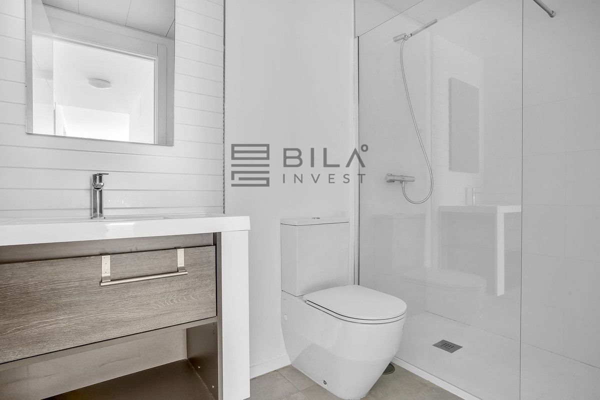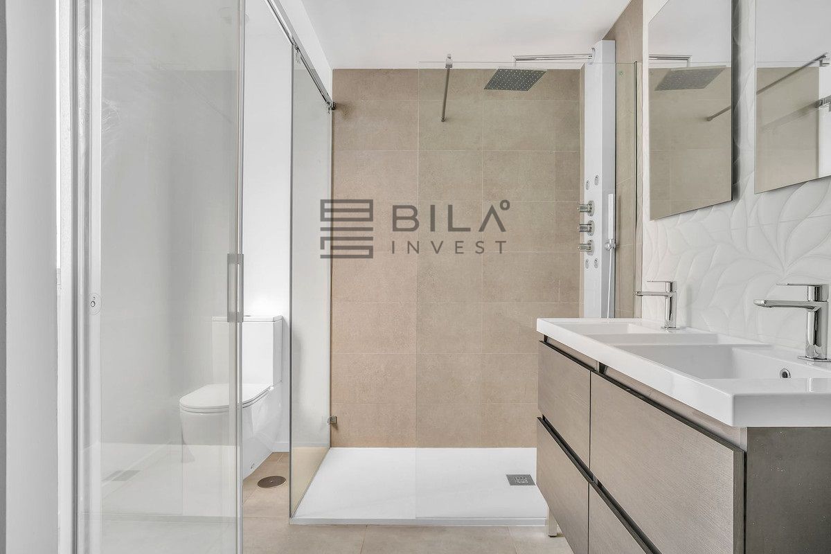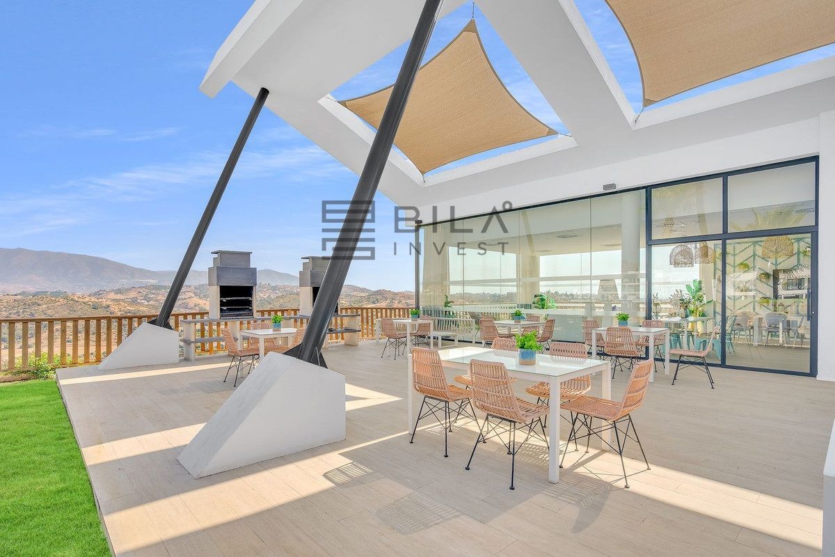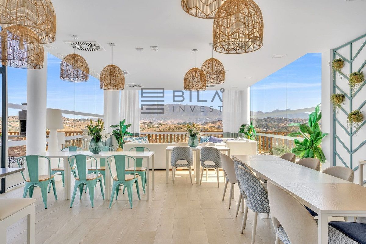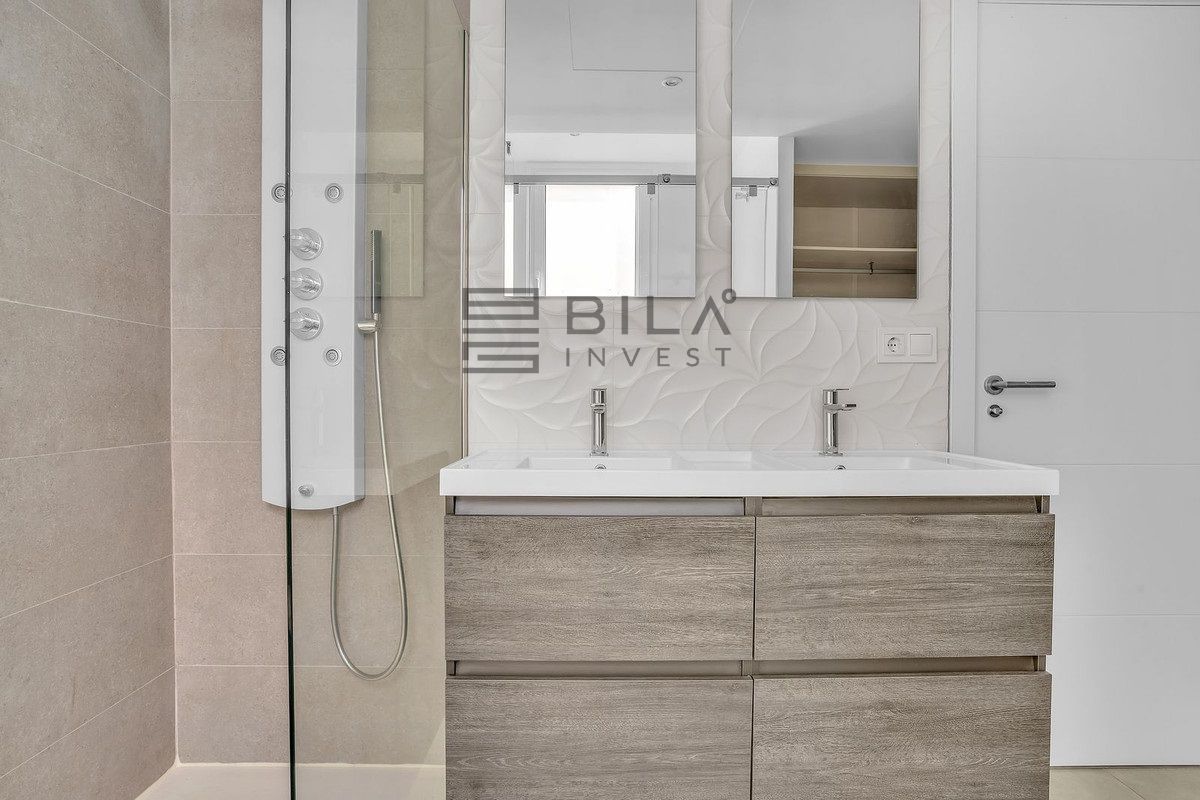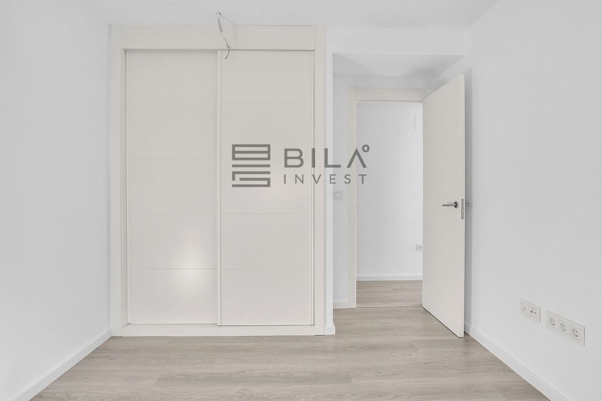 Este moderno apartamento de nueva construcción de 3 dormitorios y 2 baños se ubica en la primera línea dentro de la urbanización, en la fila inferior, lo que lo sitúa más cerca de la entrada peatonal. Su ubicación lo convierte en uno de los pocos con vistas panorámicas al mar sin ningún edificio enfrente, lo que garantiza privacidad y sin posibilidades de futuros desarrollos que bloqueen las vistas.