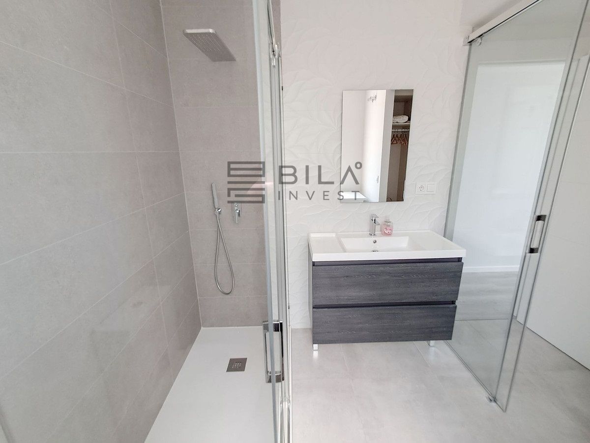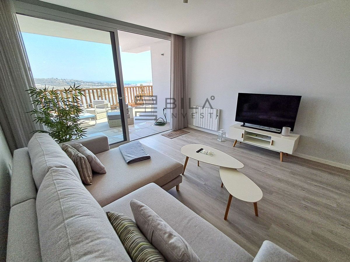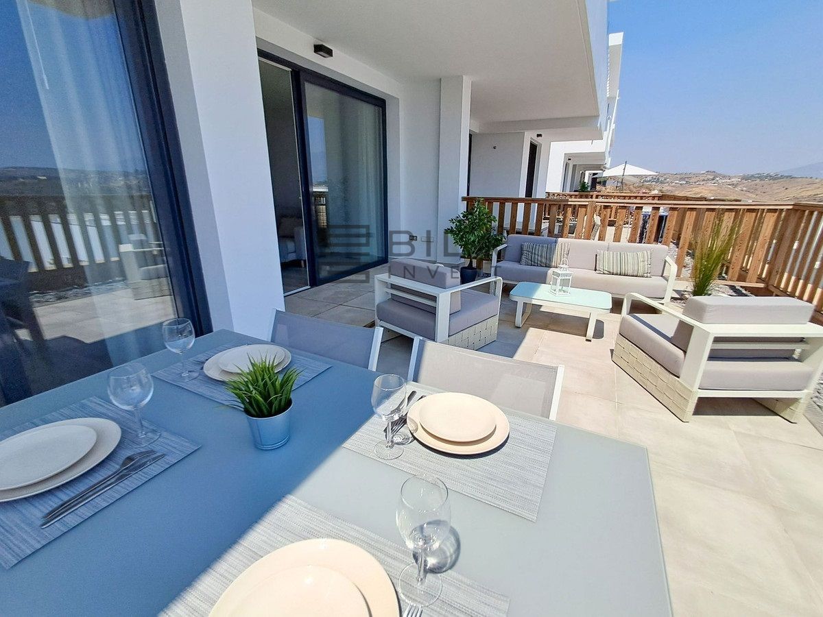La propiedad te recibe a la entrada con una cocina de concepto abierto, moderna y luminosa, que a su vez da paso al salón-comedor. Desde el salón, se accede a su espléndida terraza con vistas al mar, perfecta para los amantes del sol que desean disfrutar del exterior con el clima mediterráneo. Todo con un diseño elegante y sutil, ideal para descansar y relajarse.