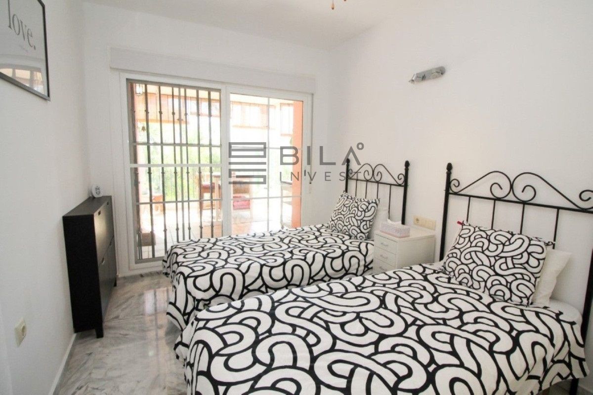 Esta propiedad verdaderamente única y sin igual ofrece una experiencia de vida extraordinaria. Originalmente un apartamento en planta baja de 2 dormitorios y 2 baños, los propietarios actuales han transformado el espacio incorporando dos áreas contiguas, creando una magnífica casa de 3 dormitorios que abarca unos impresionantes 294 m², incluidos 105 m² de terrazas envolventes. Rodeada de exuberantes jardines tropicales, esta fabulosa propiedad está ubicada dentro de la exclusiva comunidad cerrada de Zafiro de Miraflores, lo que brinda un estilo de vida sereno y seguro. El hall de entrada conduce al lavadero totalmente equipado, una gran sala de estar, dos dormitorios dobles, ambos con armarios empotrados y acceso a la terraza, baño en suite y baño de invitados. El gran comedor está separado por elegantes puertas divisorias de vidrio y se conecta a la perfección con la cocina abierta y totalmente equipada, ideal para el entretenimiento y la vida familiar. Desde esta zona se accede a otra zona de 65m2 que consta de un enorme dormitorio principal con vestidor y una segunda sala de estar con puertas que dan a las terrazas. Los 105 m² de terrazas envolventes, rodeadas de jardines tropicales, proporcionan un entorno ideal para cenar al aire libre, descansar o simplemente disfrutar del hermoso entorno. A solo 10 minutos a pie del Miraflores Golf Club, a 10 minutos de la playa y a 5 minutos en coche de La Cala de Mijas, esta propiedad ofrece una comodidad incomparable. Marbella también está a solo 15 minutos. Terminado en 2006, Zafiro de Miraflores es un desarrollo muy solicitado conocido por sus áreas comunes bellamente mantenidas, que incluyen una gran piscina y jardines tropicales. Con fácil acceso a supermercados, tiendas, bares, restaurantes y la playa, todo lo que necesita está a su alcance. Esta propiedad viene con estacionamiento subterráneo y un gran trastero.