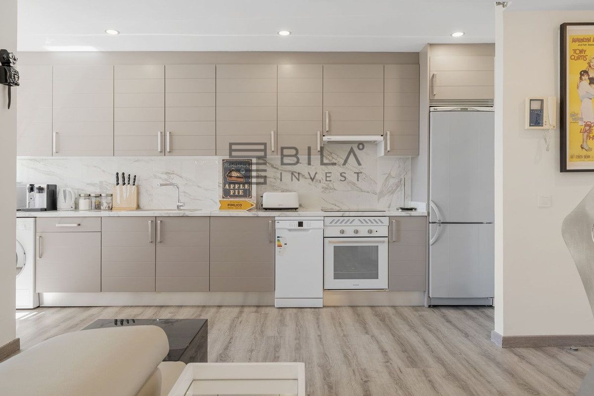 La cocina, completamente amueblada, ya está lista para que prepares ese plato que tanto te gusta. Y tras una buena comida, ¿por qué no disfrutar de un rato de relax en el salón? Amueblado y con aire acondicionado, este espacio asegura el confort que buscas todos los días.