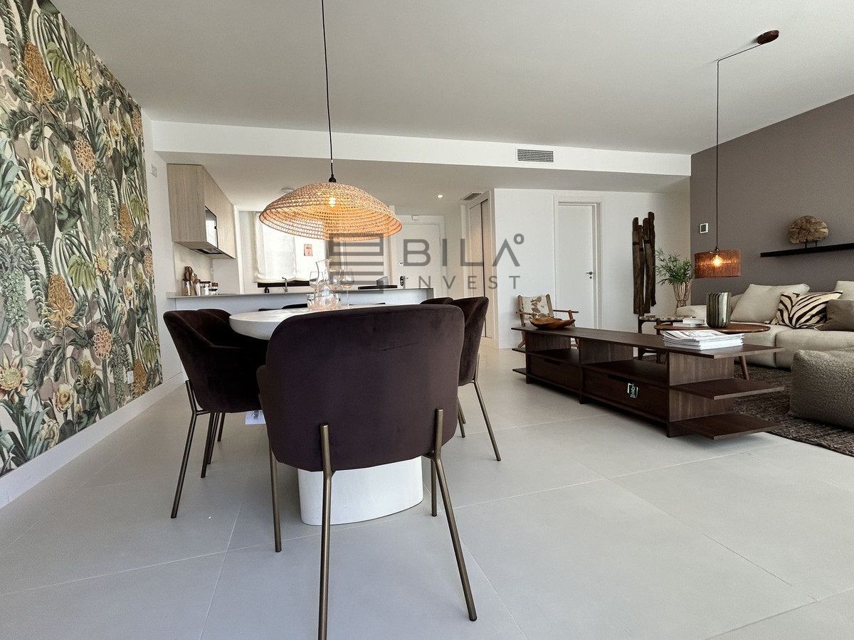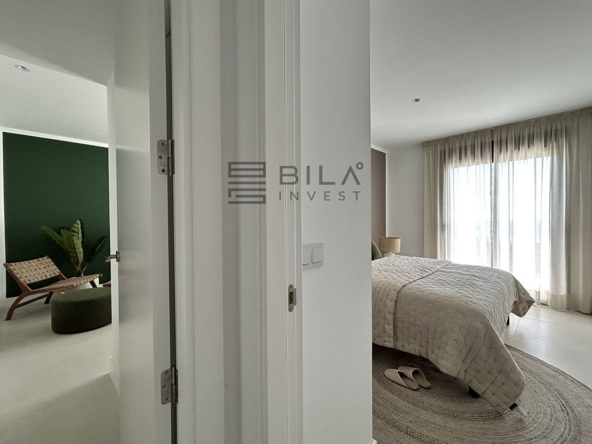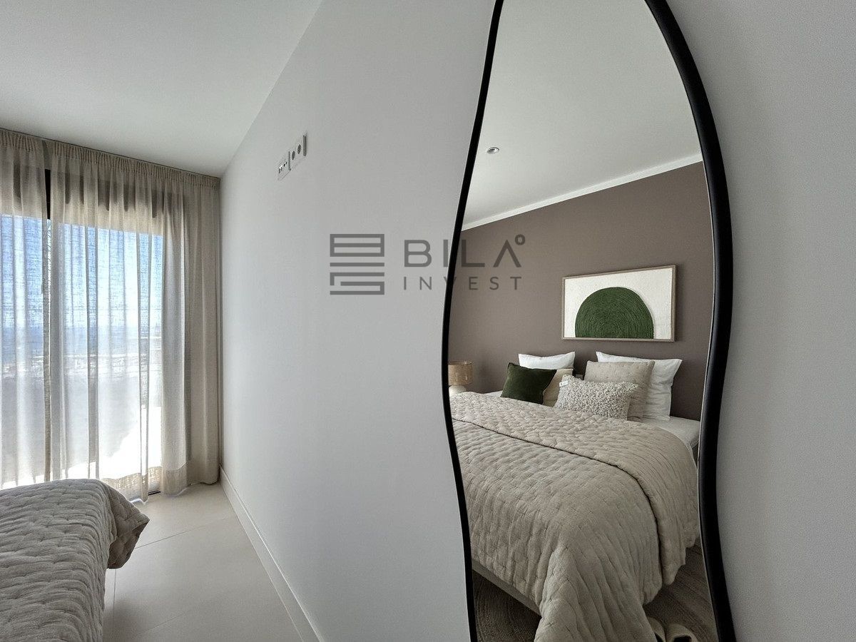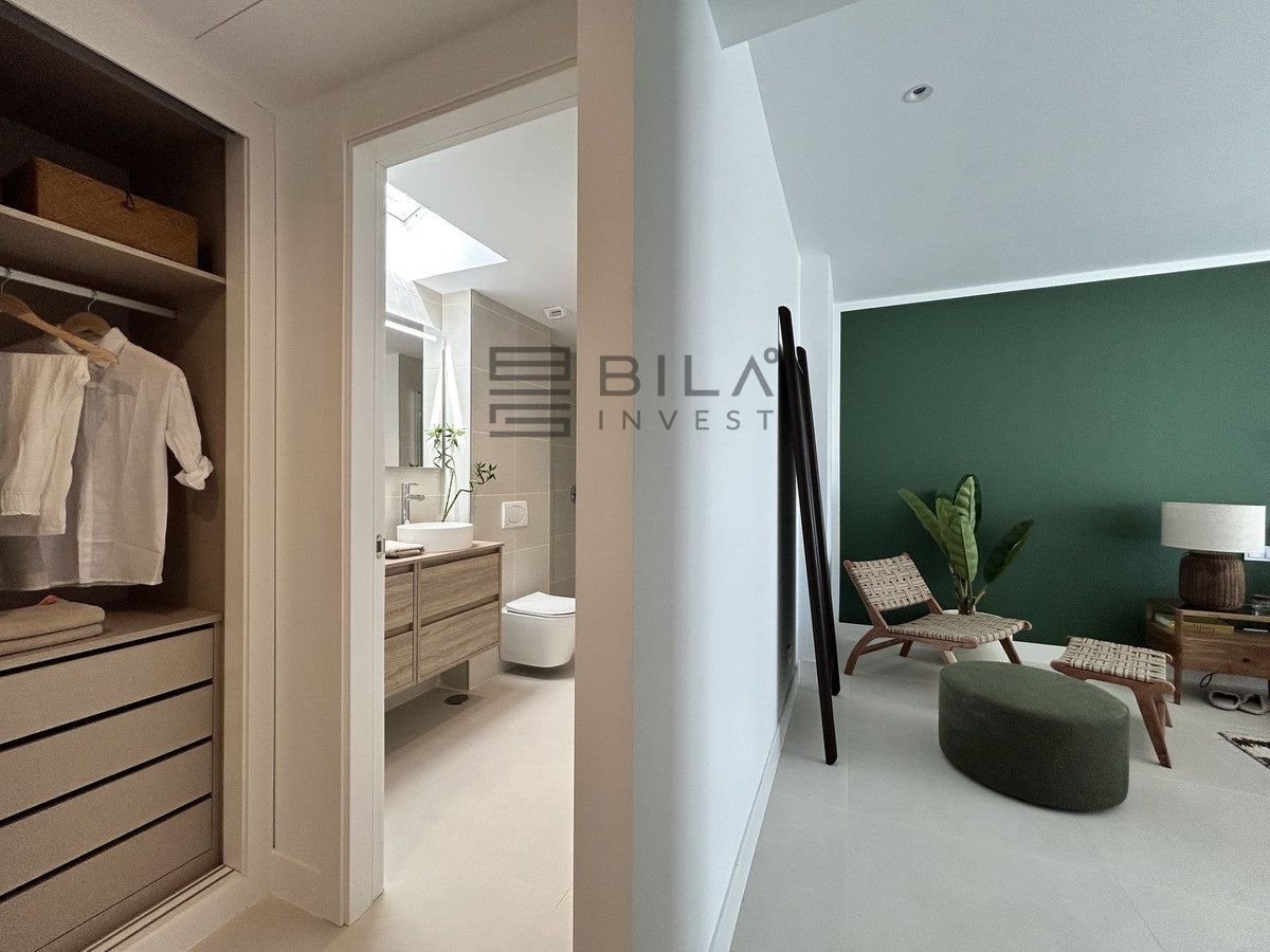 El suelo porcelánico de gran formato se extiende por toda la vivienda, mientras que los armarios empotrados totalmente revestidos y las barandillas de vidrio en terrazas aportan elegancia y confort. En línea con un estilo de vida sostenible, la vivienda cuenta con aislamiento térmico y preinstalación para cargador de coche eléctrico. Además, incluye dos plazas de garaje y trastero.