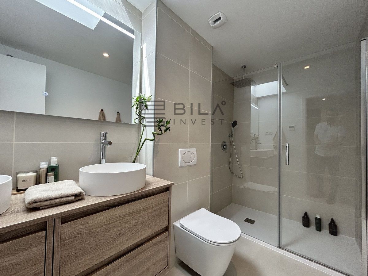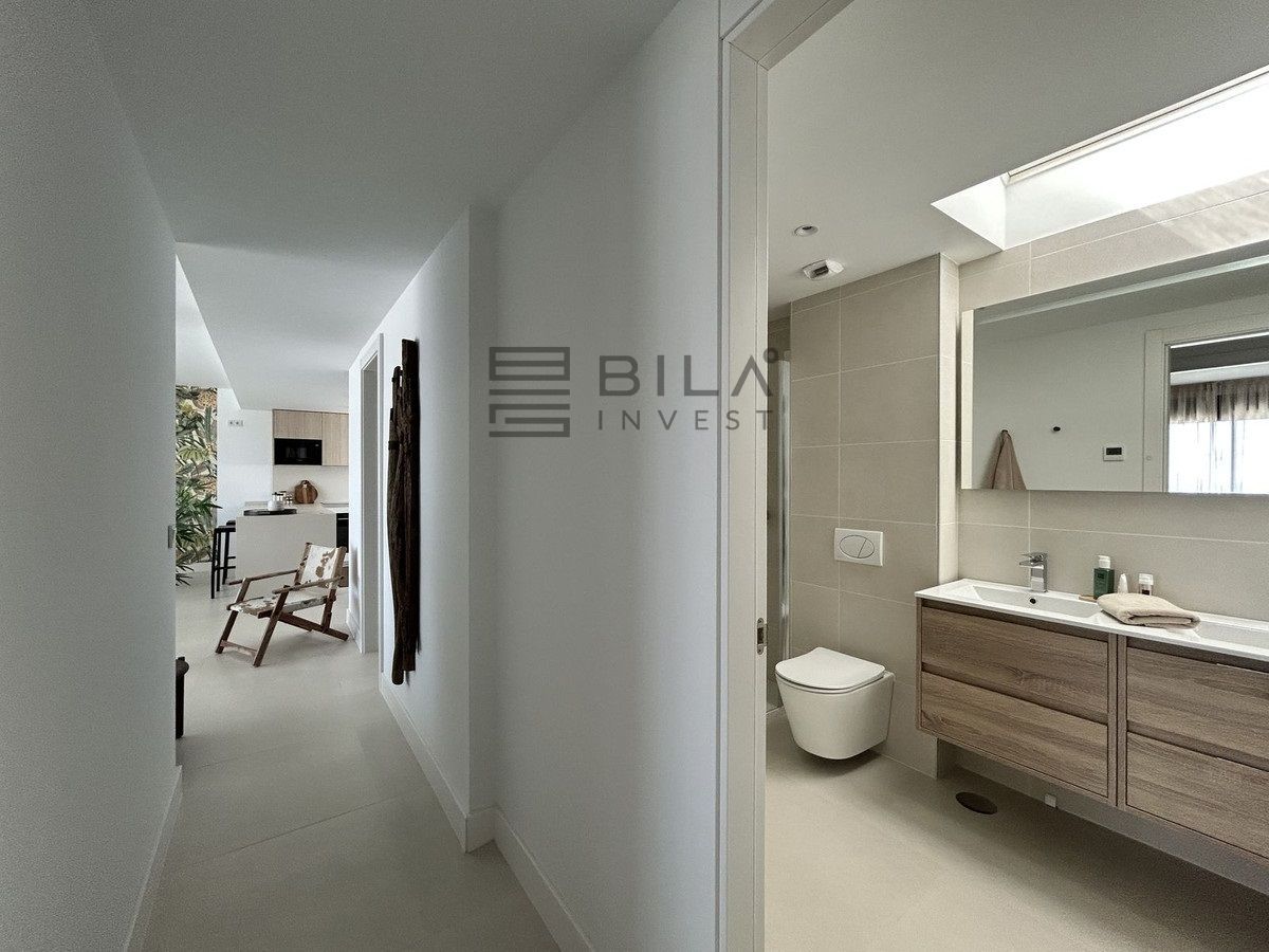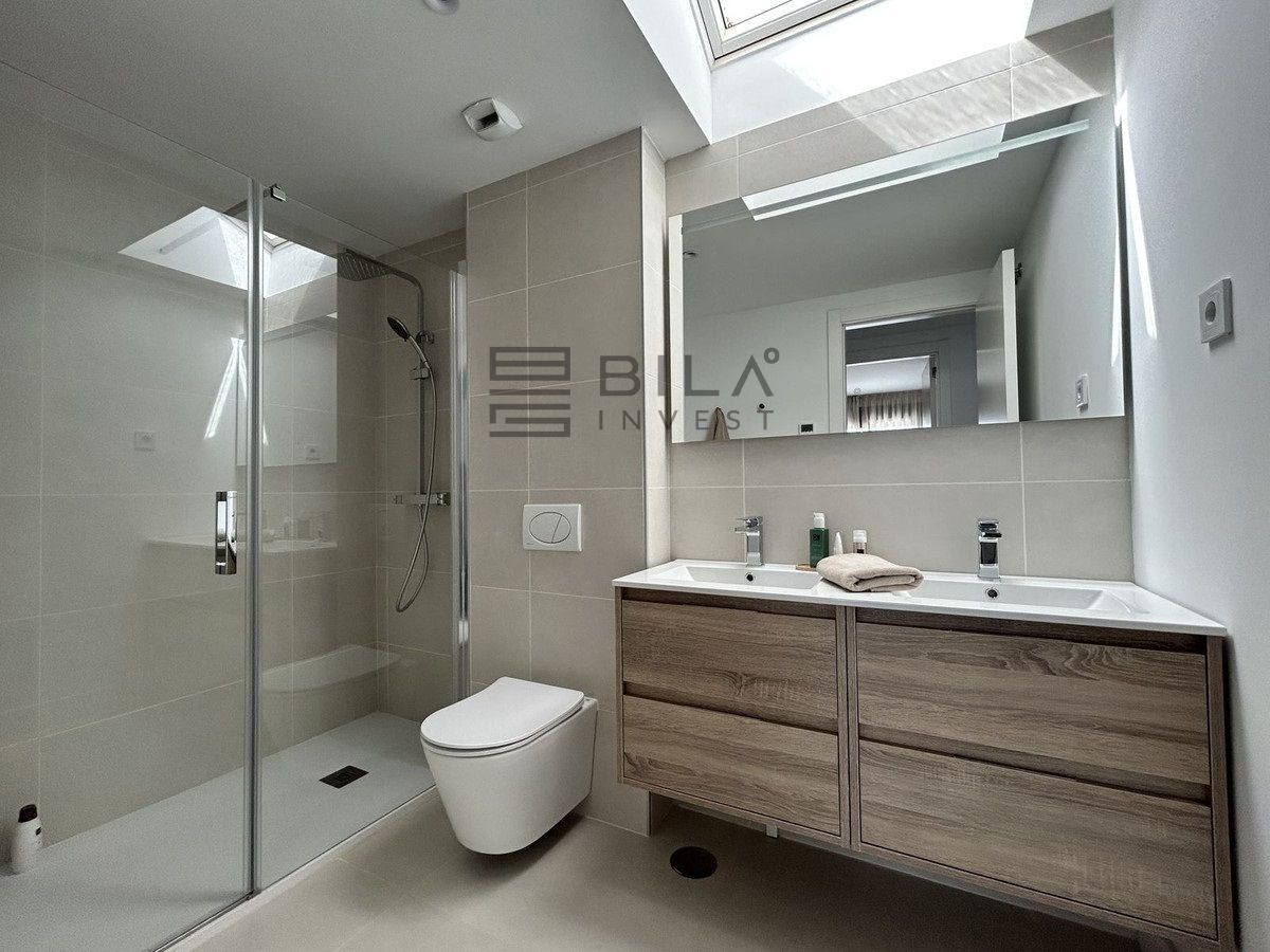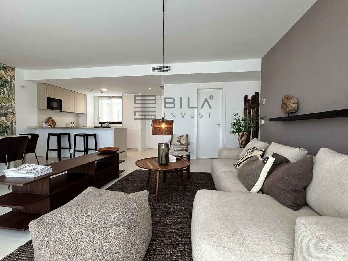 El suelo porcelánico de gran formato se extiende por toda la vivienda, mientras que los armarios empotrados totalmente revestidos y las barandillas de vidrio en terrazas aportan elegancia y confort. En línea con un estilo de vida sostenible, la vivienda cuenta con aislamiento térmico y preinstalación para cargador de coche eléctrico. Además, incluye dos plazas de garaje y trastero.