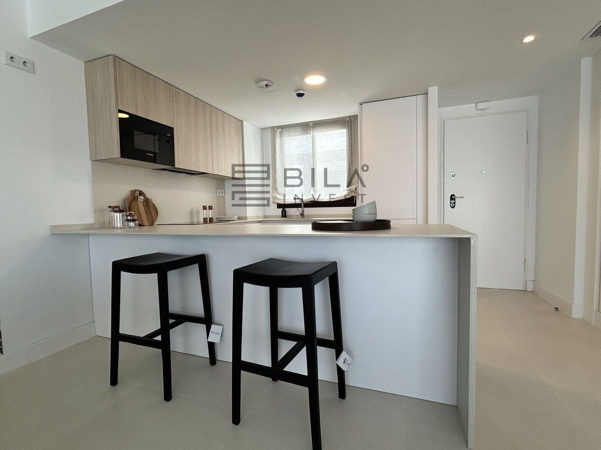 La vivienda se entrega completamente amueblada con piezas de diseño de alta gama creadas por Ikonia Ilusion&Arte, donde destacan la cuidada iluminación y la amplitud de cada estancia.