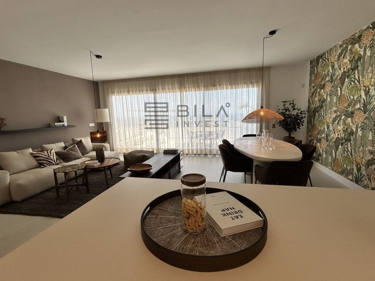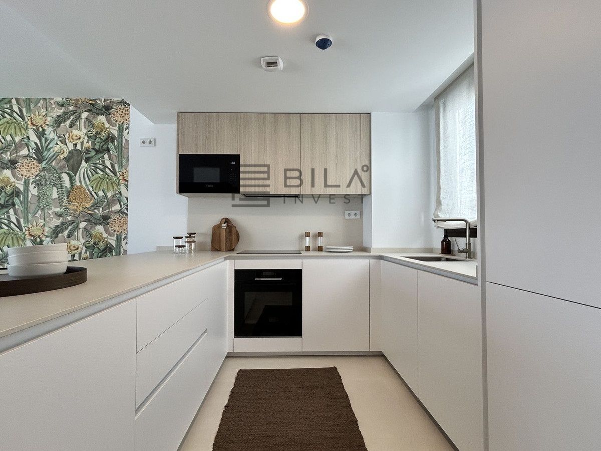 El diseño de planta abierta une salón y cocina en un mismo espacio, conectado a la terraza mediante ventanales correderos de gran formato que maximizan la entrada de luz y crean una transición fluida entre interior y exterior. Entre sus calidades destacan: climatización: frío/calor mediante aerotermia, suelo radiante en baños, carpintería exterior en aluminio/PVC con doble acristalamiento termoacústico y de seguridad, así como preinstalación de estores motorizados en dormitorios y salón.