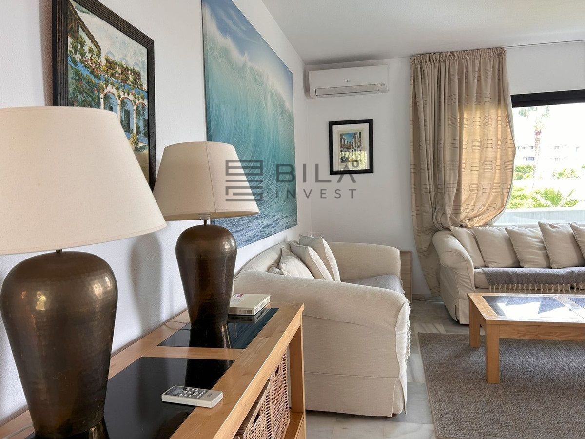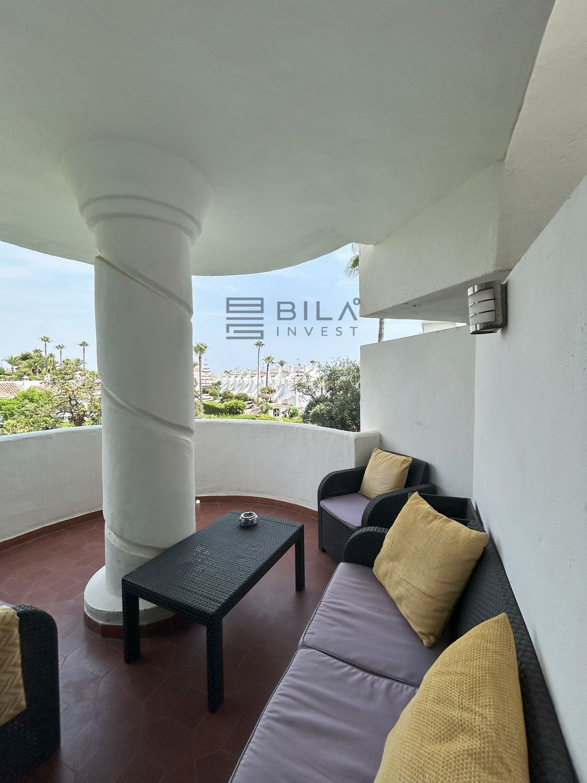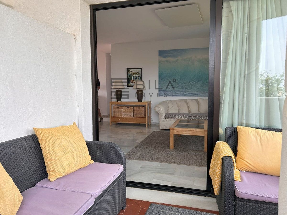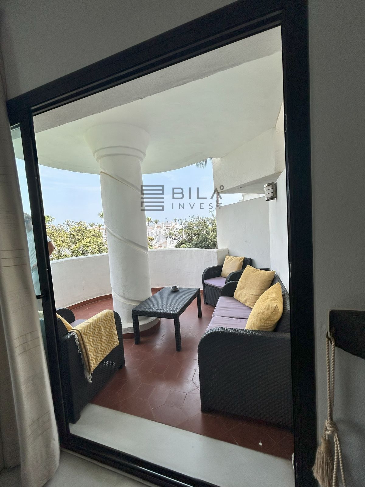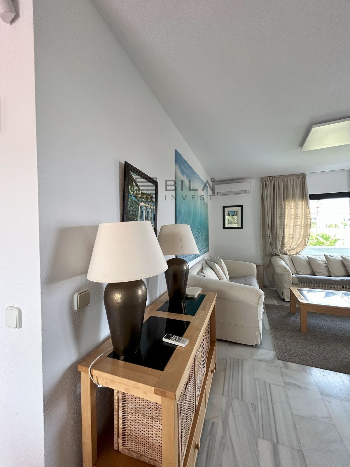 Un luminoso y precioso apartamento situado en el tranquilo y verde entorno de Sitio de Calahonda. Perfecto tanto como vivienda vacacional como inversión para alquilar, gracias a su licencia turística válida y a la opción de continuar con el actual operador de alquiler. Interior 81 m² de superficie habitable, salón con chimenea y acceso a la terraza, 2 dormitorios y 2 baños, cocina independiente con la opción de abrirla al salón, dos terrazas con un total de 24 m² con vistas al mar. Totalmente amueblado y listo para entrar a vivir.
