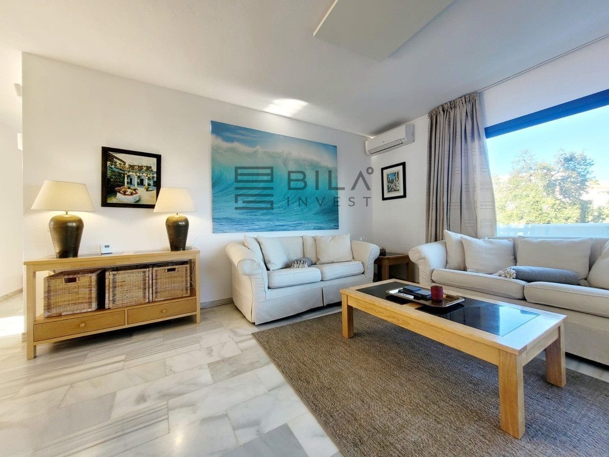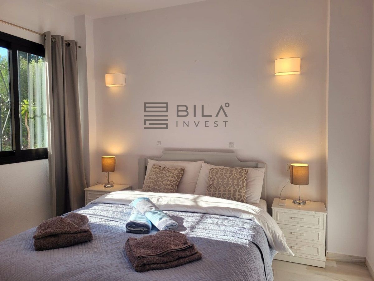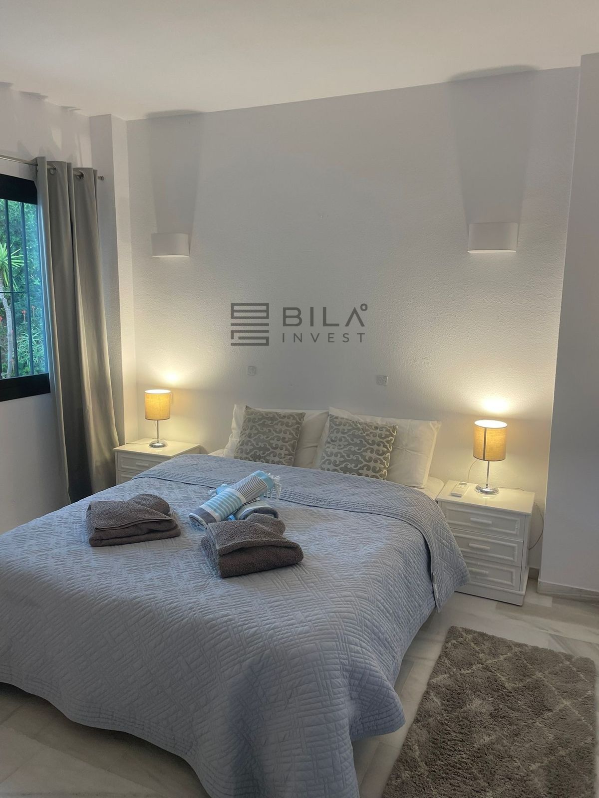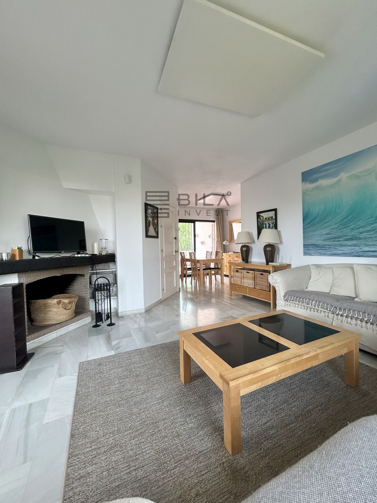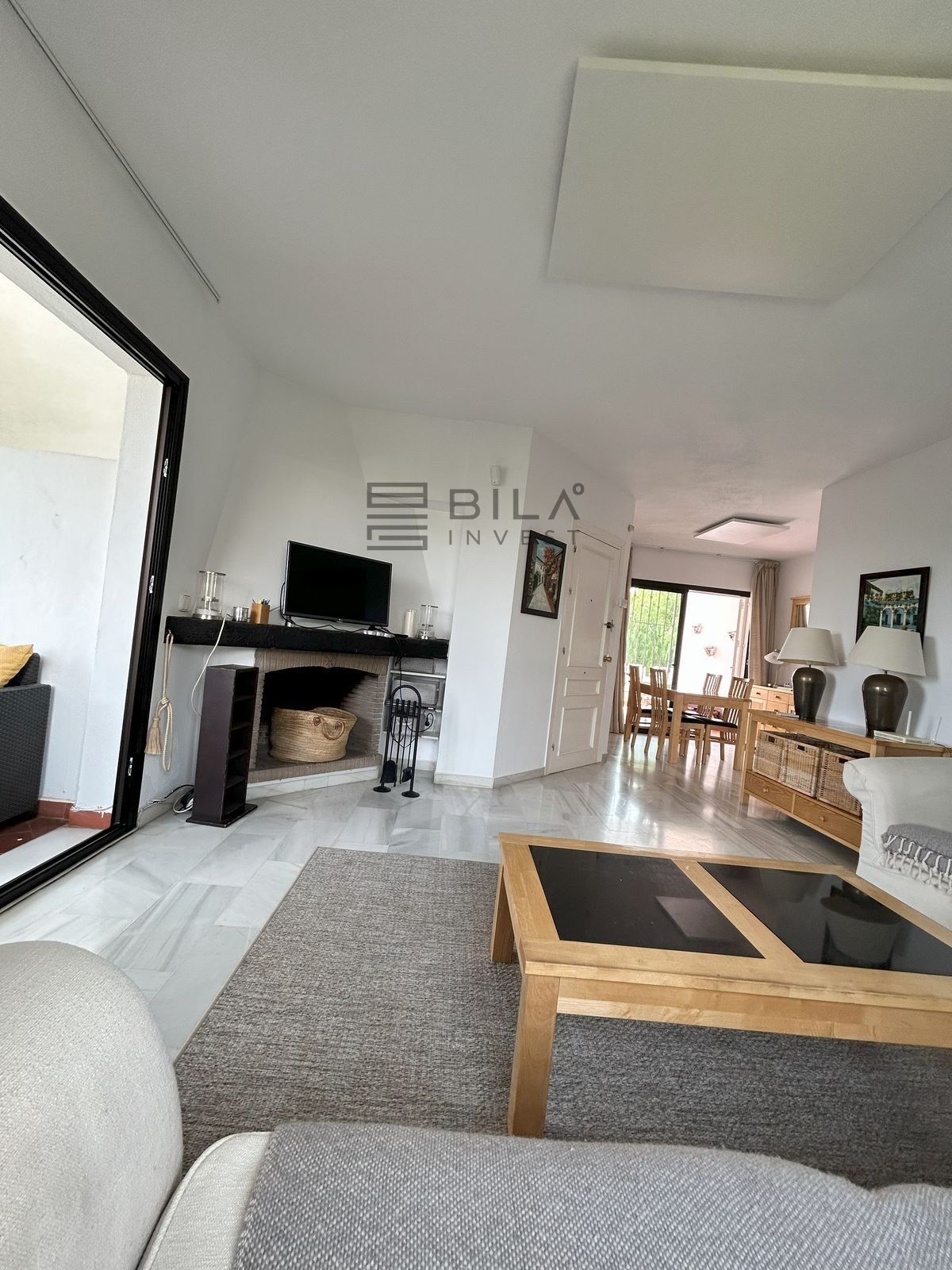 Un luminoso y precioso apartamento situado en el tranquilo y verde entorno de Sitio de Calahonda. Perfecto tanto como vivienda vacacional como inversión para alquilar, gracias a su licencia turística válida y a la opción de continuar con el actual operador de alquiler. Interior 81 m² de superficie habitable, salón con chimenea y acceso a la terraza, 2 dormitorios y 2 baños, cocina independiente con la opción de abrirla al salón, dos terrazas con un total de 24 m² con vistas al mar. Totalmente amueblado y listo para entrar a vivir.