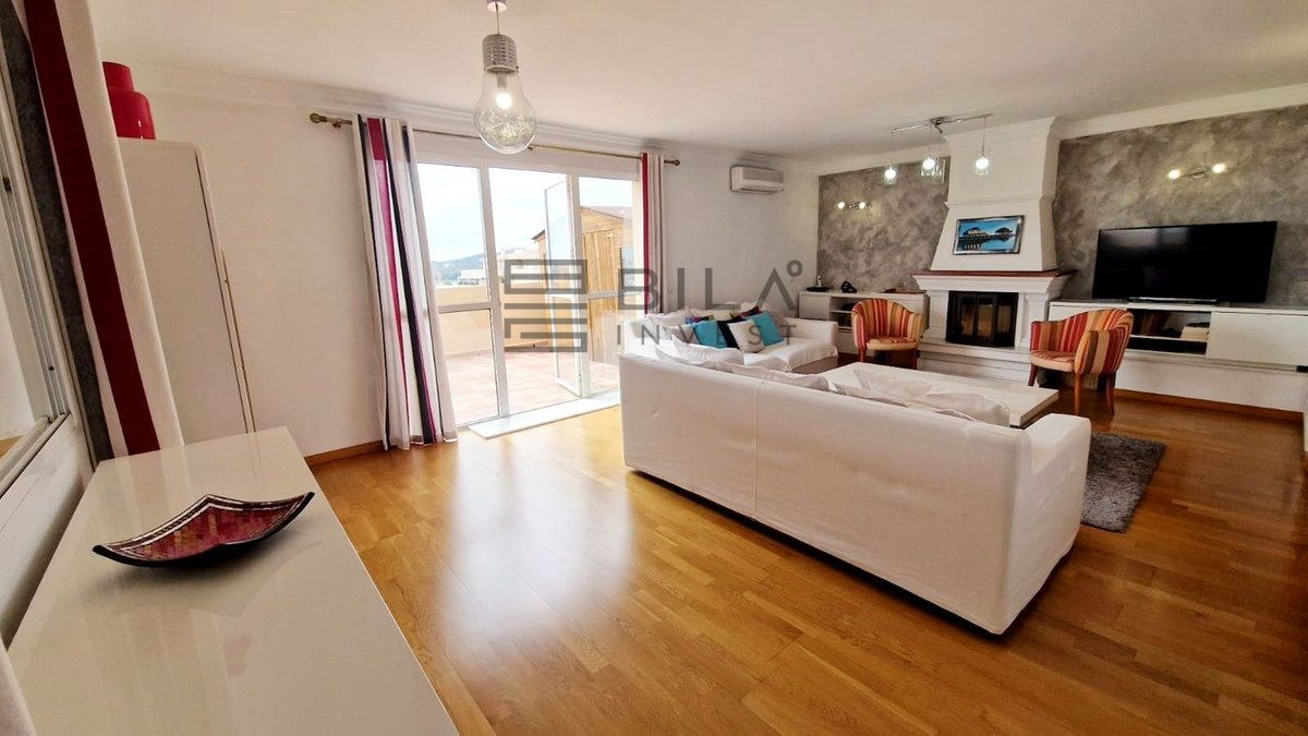 El interior cuenta con una moderna cocina totalmente equipada, un comedor independiente y un amplio salón con chimenea que da directamente a la terraza. Hay 3 dormitorios dobles y 2 baños, incluyendo una suite principal con baño en suite y sauna privada. Diseñada para ofrecer comodidad y estilo, la propiedad combina elegantes acabados, como suelos de mármol y madera, con todas las comodidades modernas.