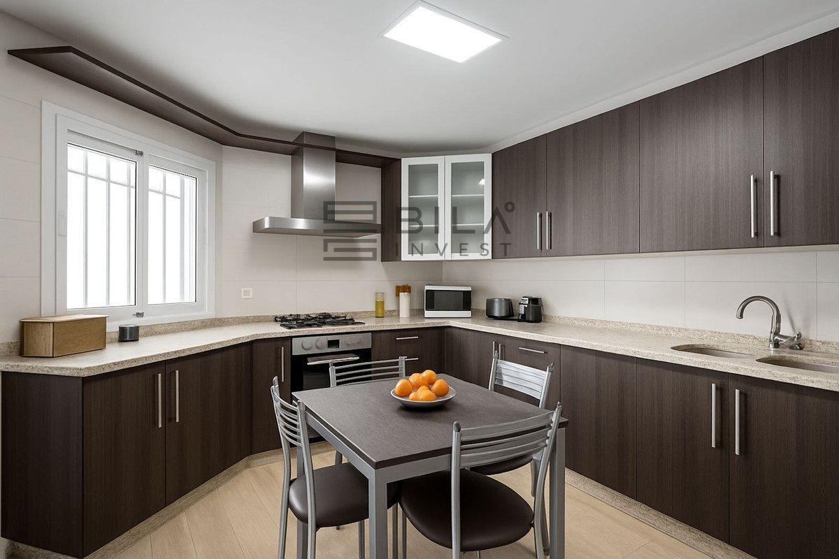The property features an elegant entrance hall leading to a spacious and bright living–dining room, a fully fitted kitchen with utility room, 3 bedrooms (one with en-suite bathroom), and 3 full bathrooms. It also offers two terraces: one on the main floor and a spectacular rooftop terrace upstairs, perfect for a solarium or outdoor living space to enjoy the Mediterranean climate all year round.