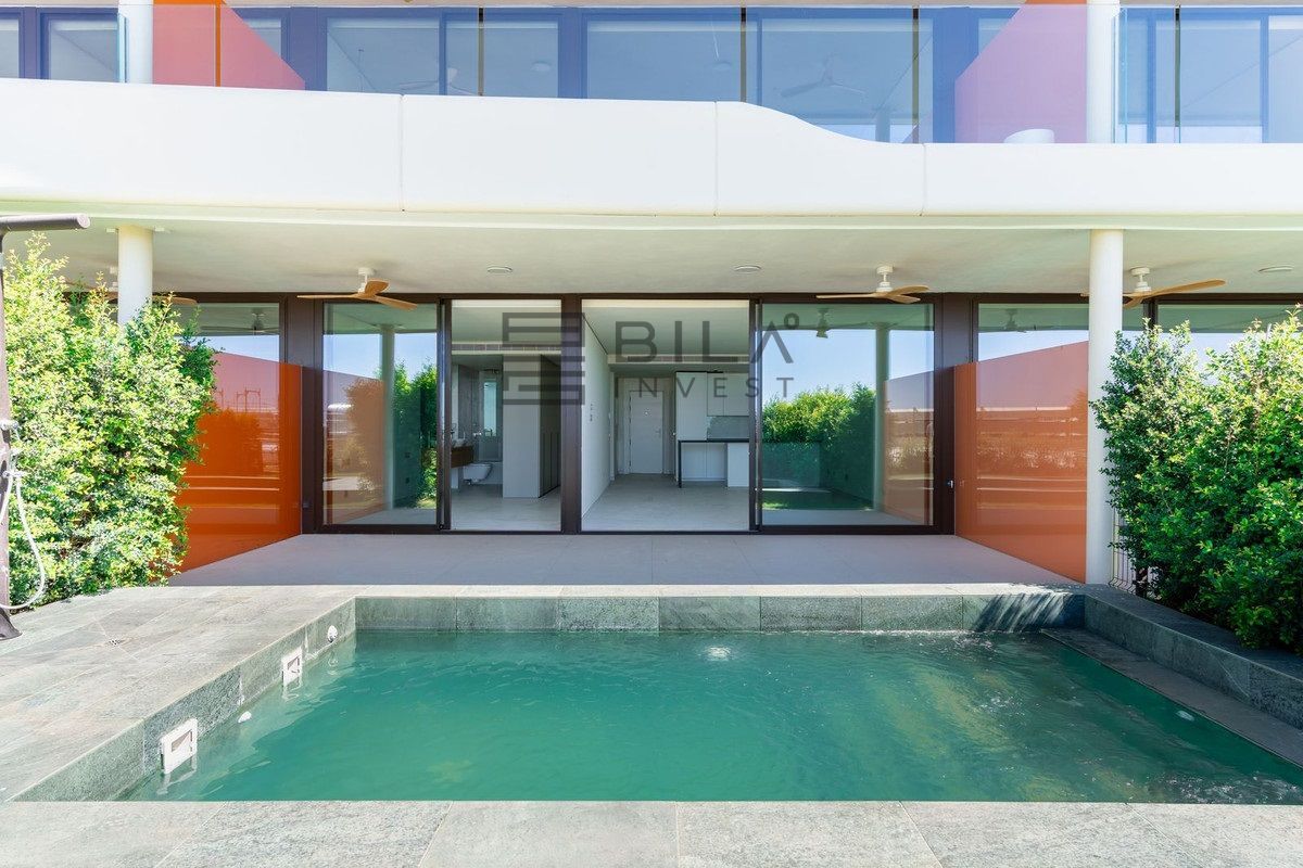 La propiedad dispone de dos dormitorios y dos baños, ofreciendo un espacio funcional y bien distribuido para familias, parejas o como segunda residencia. El apartamento cuenta con una cocina totalmente equipada, doble acristalamiento para un óptimo aislamiento térmico y acústico, y se entrega sin amueblar, permitiendo personalizar cada estancia al gusto del comprador. Además, destaca por su piscina privada y jacuzzi, perfectos para relajarse en la intimidad del hogar.
