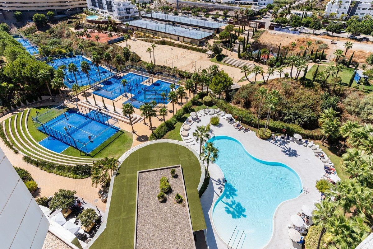 En cuanto a la seguridad y servicios, la vivienda se encuentra en una comunidad cerrada con servicio de seguridad 24 horas, sistema de alarma y conserjería, garantizando tranquilidad y protección en todo momento. El complejo ofrece también espacios de co-working, ideales para quienes trabajan desde casa o requieren de un entorno profesional sin salir de la urbanización. El apartamento incluye plaza de garaje comunitario y parking, facilitando el acceso y la comodidad diaria.