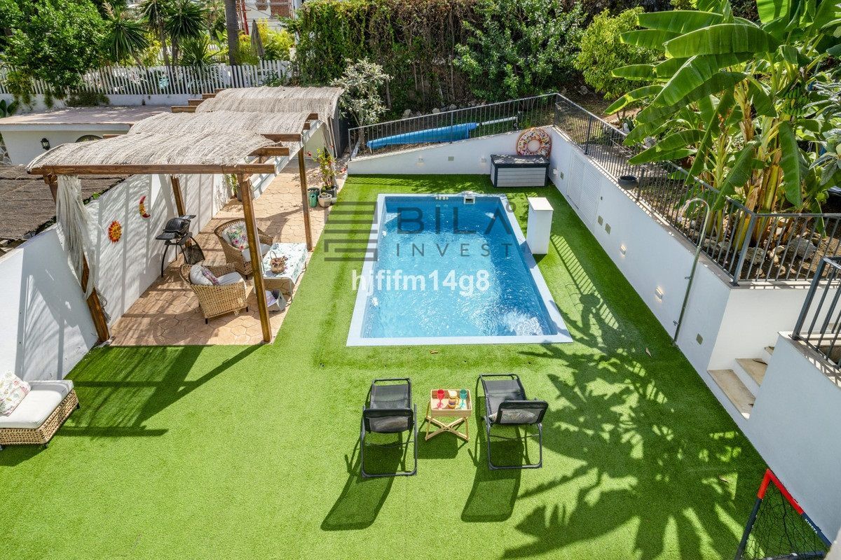 Ubicada en una generosa parcela de 426 m² con árboles frutales, piscina privada y una acogedora zona chill-out, esta vivienda está diseñada para disfrutar del estilo de vida al aire libre de Marbella con familiares y amigos. La villa, de 138 m², se distribuye en dos niveles. La planta baja cuenta con una amplia cocina de concepto abierto conectada a un luminoso salón-comedor, un baño completo y dos cómodos dormitorios.