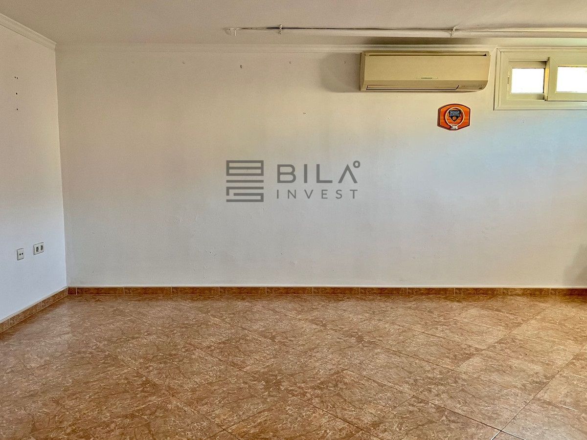 Planta semisótano: Espacio para aparcamiento de un coche y una habitación adicional, perfecta como despacho, sala de juegos o dormitorio extra, también equipada con aire acondicionado.