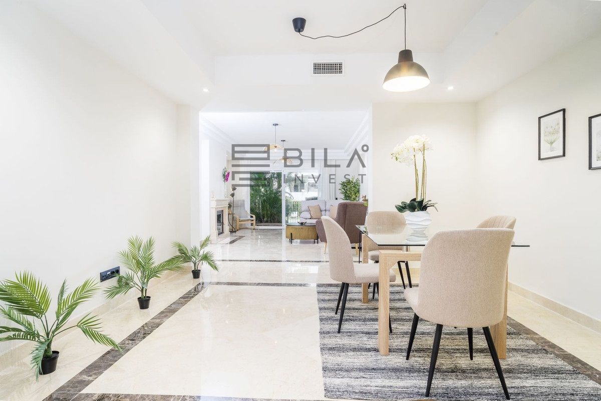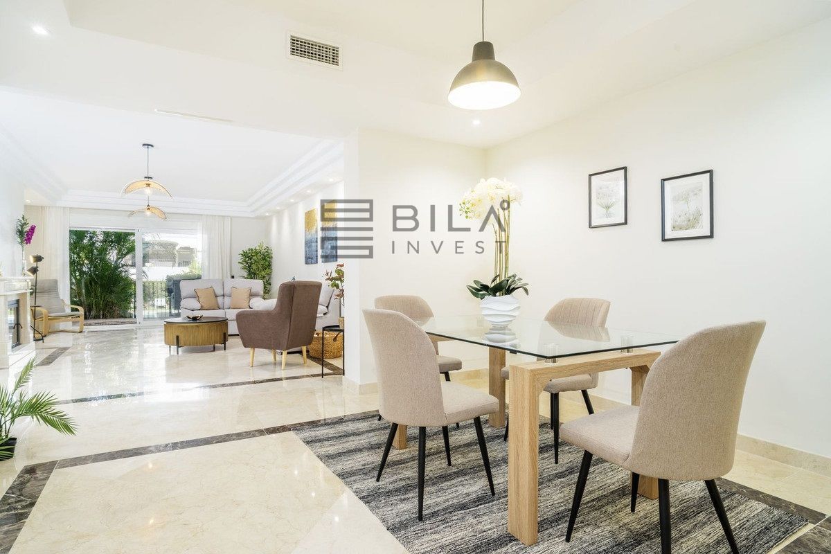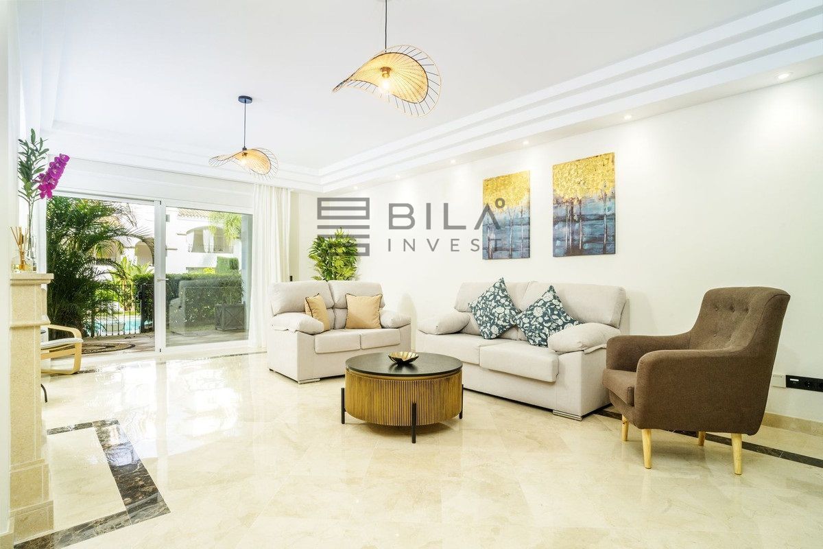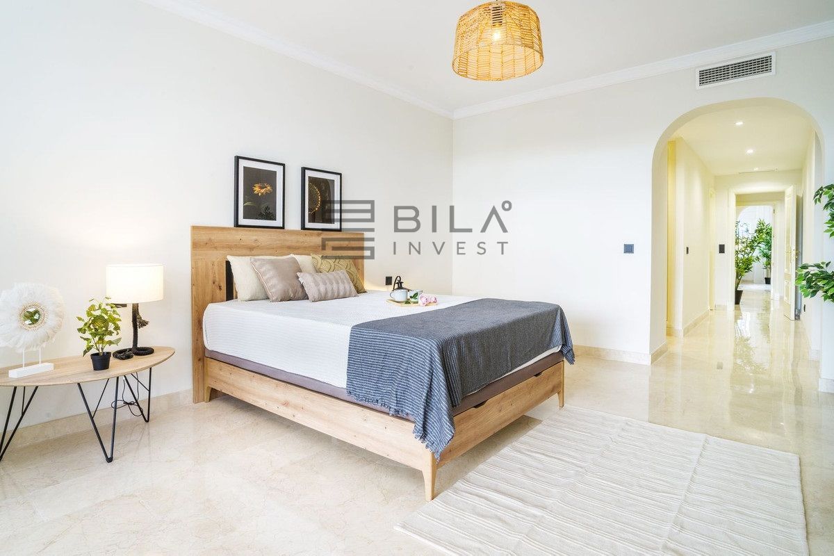 En esta vivienda en planta jardín, de casi 200 metros, con tres dormitorios y tres baños en suite, la vida fluye con amplitud y comodidad. Desde la terraza, el jardín privado conecta directamente con la piscina comunitaria, creando una continuidad perfecta entre interior y exterior.