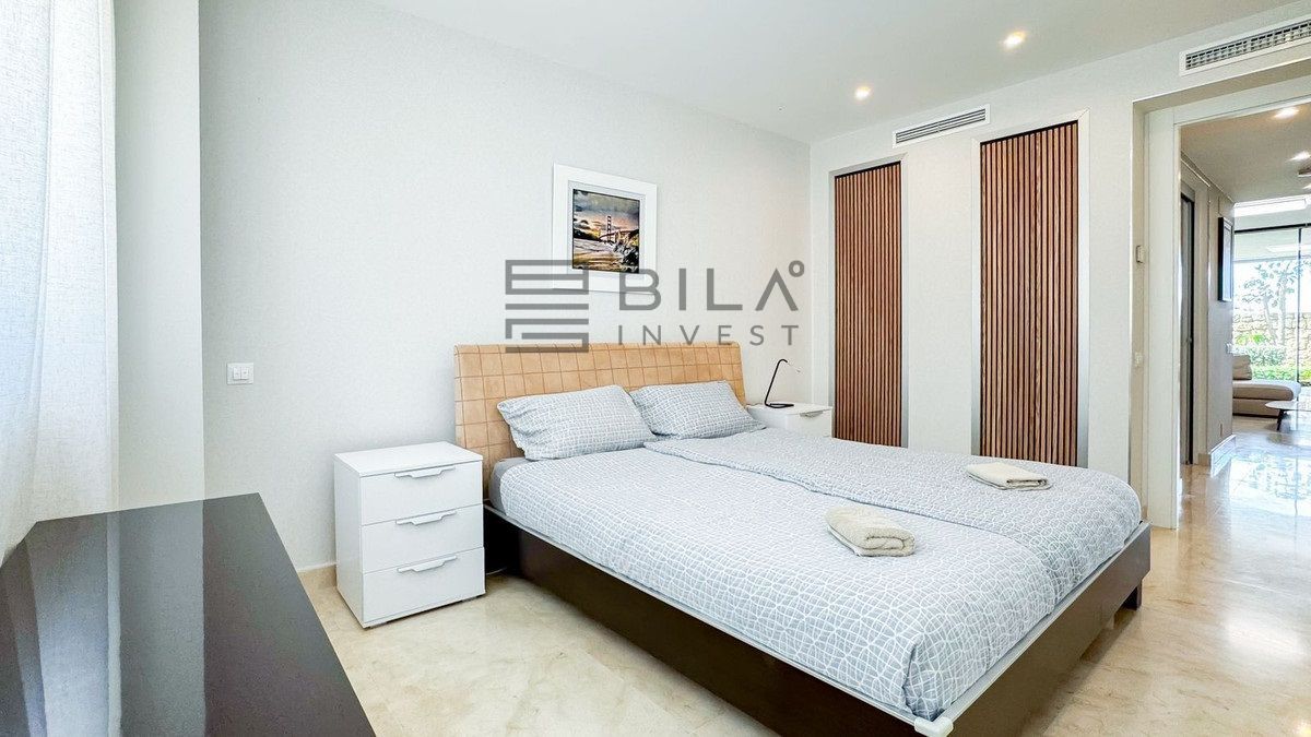 Vivir en una zona consolidada de Marbella, en la Urbanización La Montesa, es apostar por calidad y confort en un entorno tranquilo con todo al alcance. Esta vivienda ofrece 102 m2 construidos y una distribución pensada para aprovechar cada metro, con dos habitaciones y dos baños que proporcionan la intimidad necesaria para la familia o para recibir visitas. El salón-comedor, luminoso y práctico, se conecta a una cocina amueblada de estilo moderno que facilita el día a día y ofrece amplitud para cocinar y compartir. Gracias a su equipamiento, la vivienda se presenta como una opción lista para entrar a vivir: amueblada, con armarios empotrados y aire acondicionado que permiten ajustarte al ritmo de las estaciones.