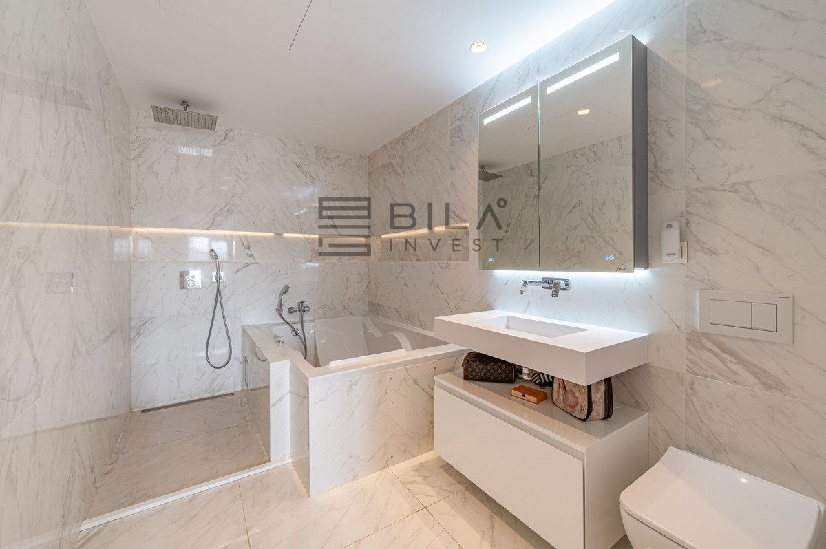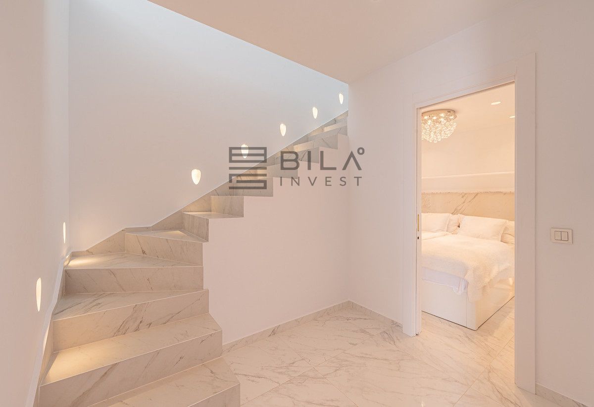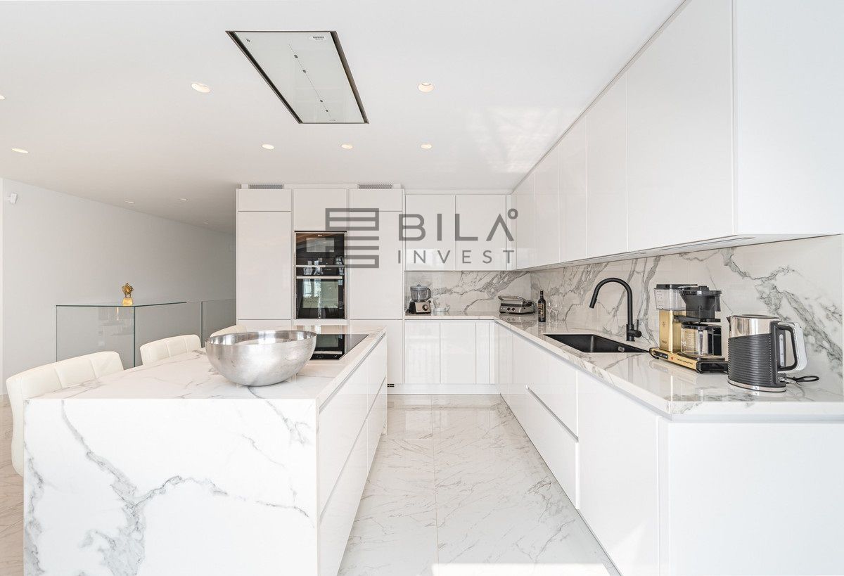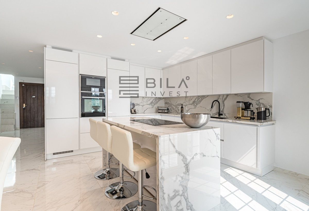 Con una superficie de 158 m² distribuidos en tres plantas, la casa adosada fusiona un diseño moderno con abundante luz natural. La planta de entrada cuenta con una elegante cocina de concepto abierto con una isla de desayuno brillante (con capacidad para tres personas) y ventanales de suelo a techo que inundan el espacio de luz solar. Junto a la cocina, el luminoso salón-comedor se integra perfectamente con el exterior, gracias a puertas correderas que potencian la sensación de amplitud y luminosidad. Un dormitorio de invitados con baño en suite, también en esta planta, se beneficia de la misma cálida luz natural. Los dormitorios principal y secundario, situados en la planta inferior, incluyen baños en suite diseñados con líneas limpias y acabados contemporáneos. El elemento más destacado es la terraza en la azotea de 100 m² con vistas ininterrumpidas al atardecer sobre el Valle del Golf. Diseñada para disfrutar tanto del interior como del exterior, la disposición minimalista de la terraza y sus superficies bañadas por el sol la convierten en un lugar ideal para relajarse o recibir invitados. Cada nivel prioriza la luz y la simplicidad moderna, creando un hogar luminoso y acogedor.