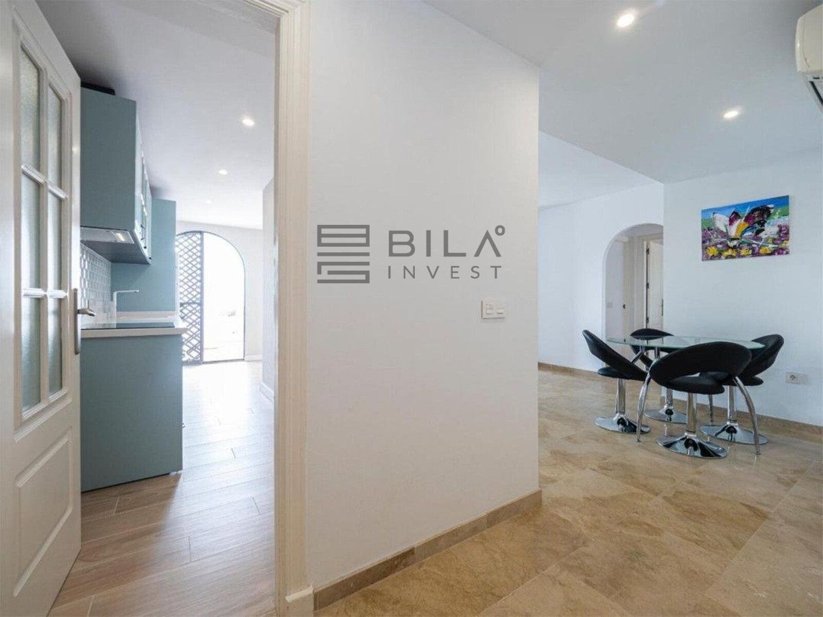 La propiedad ofrece dos dormitorios amplios y llenos de luz natural, dos baños completos, y una cocina junto a los baños renovados recientemente con un estilo moderno y funcional. Desde su amplia terraza se pueden contemplar unas bonitas vistas al mar, creando el espacio perfecto para relajarse y disfrutar del clima marbellí durante todo el año. También dispone de una plaza de garaje incluida en el precio.