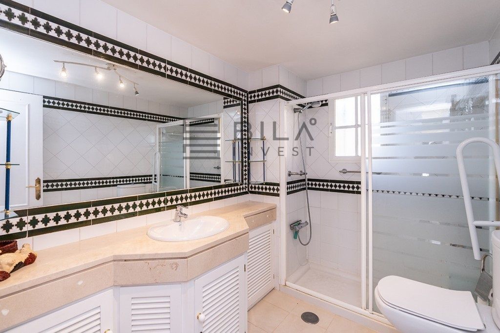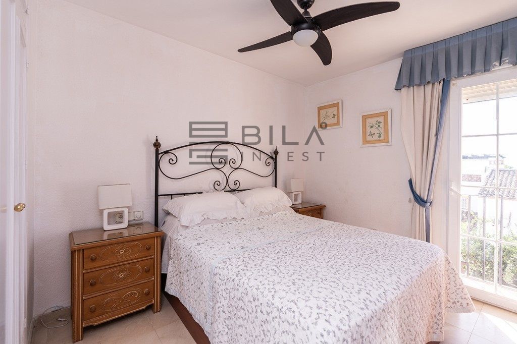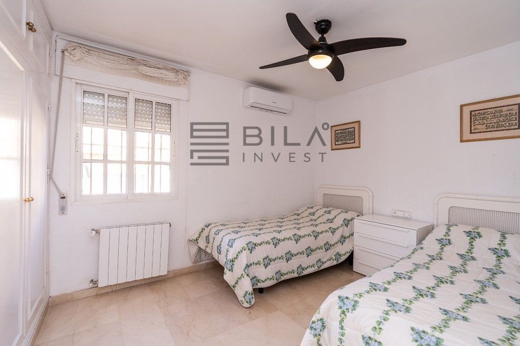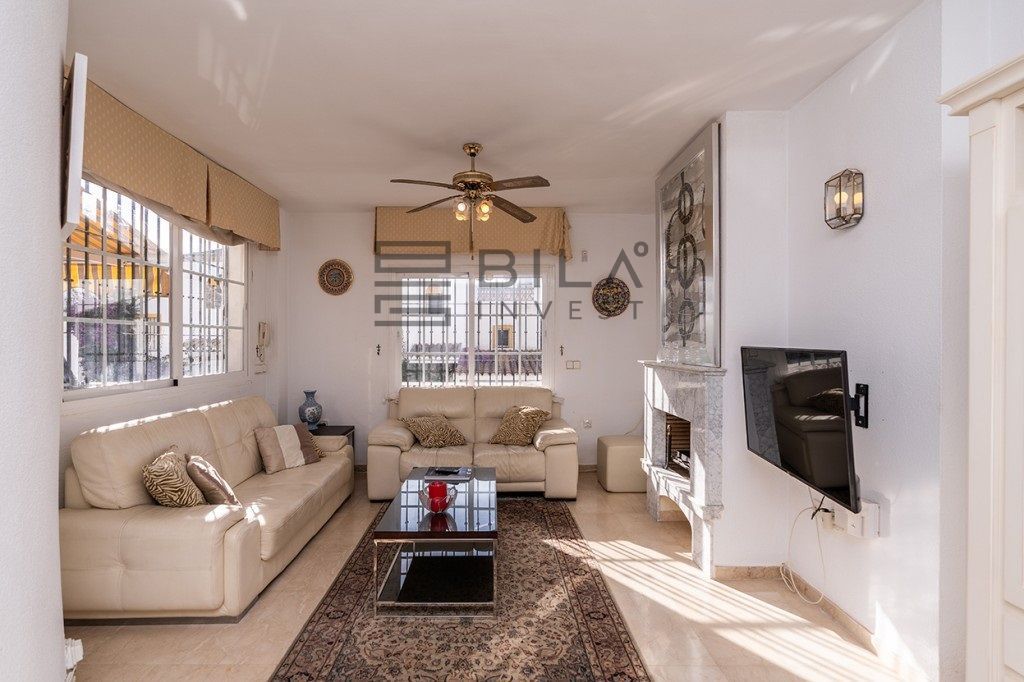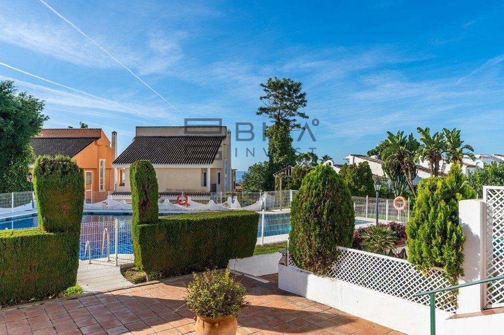 Amplia y luminosa casa adosada en esquina en la urbanización Costabella, al este de Marbella. La vivienda, distribuida en dos plantas, cuenta con tres dormitorios, tres baños, un salón de buen tamaño, una gran cocina, terraza delantera y terraza trasera. Impresionantes vistas al mar desde la primera planta y la azotea. La casa ofrece un gran potencial, ya que dispone de un sótano que podría convertirse en más dormitorios o en lo que se desee. Magnífico complejo a pocos pasos de la playa, con una gran piscina, jardín y aparcamiento. El centro de Marbella está a tan solo 10 minutos en coche.