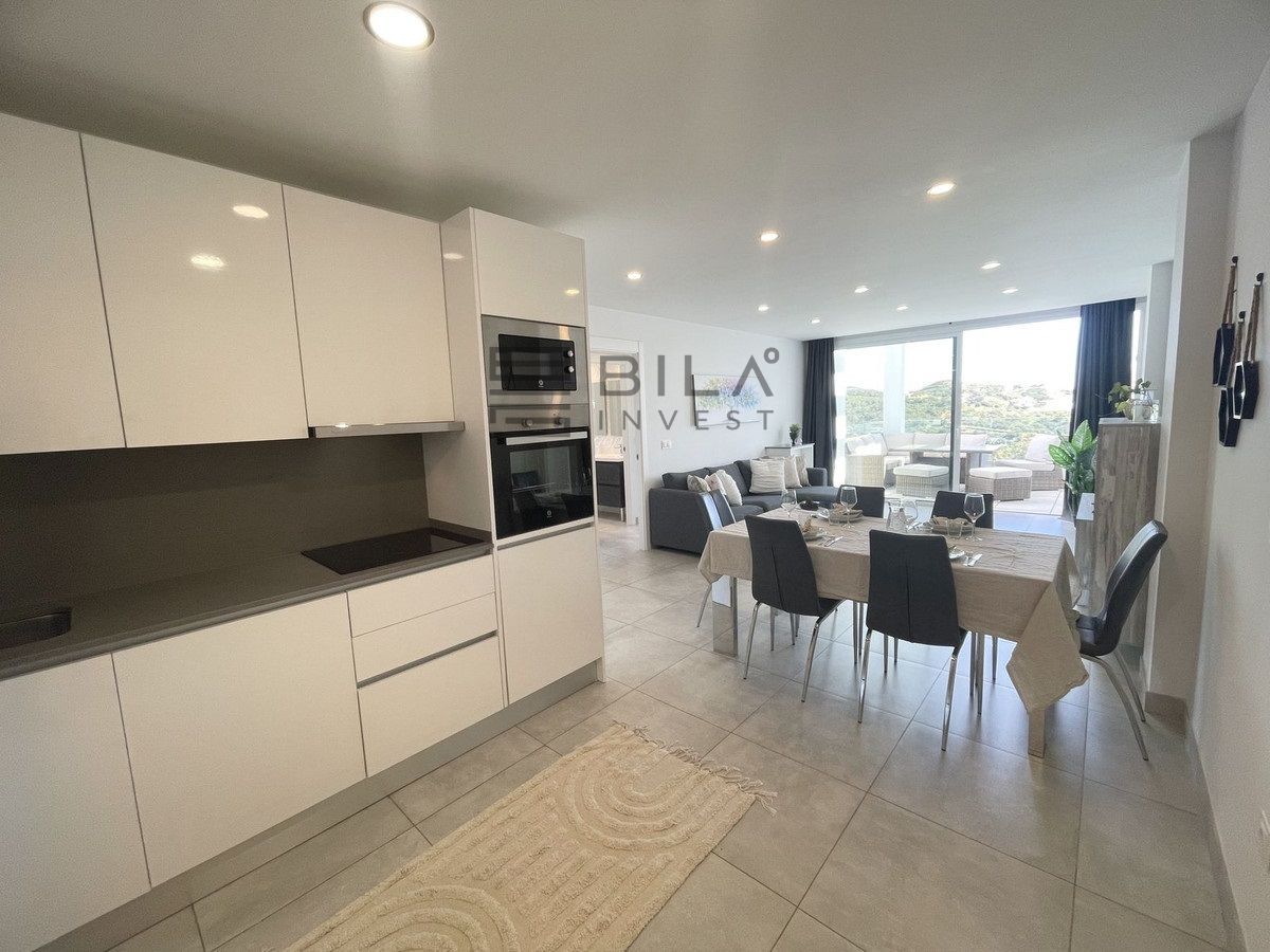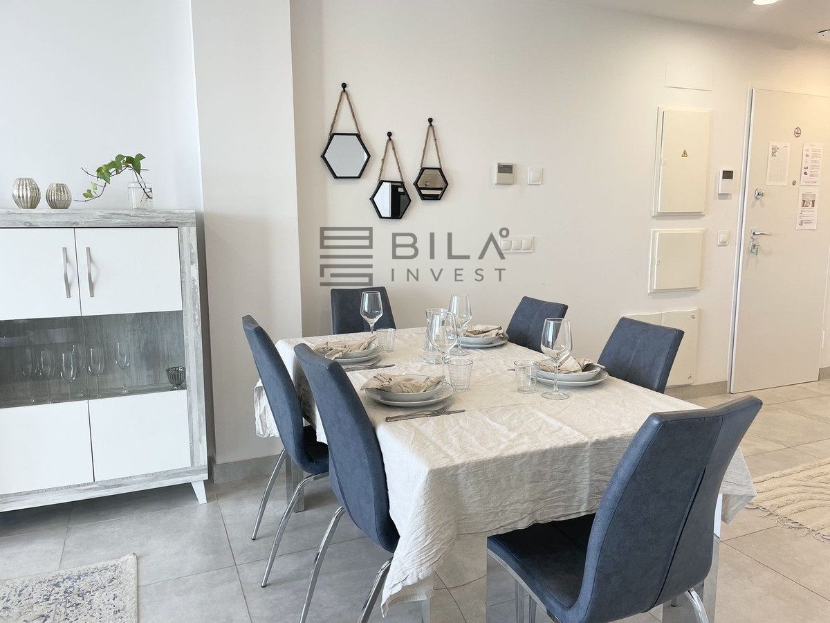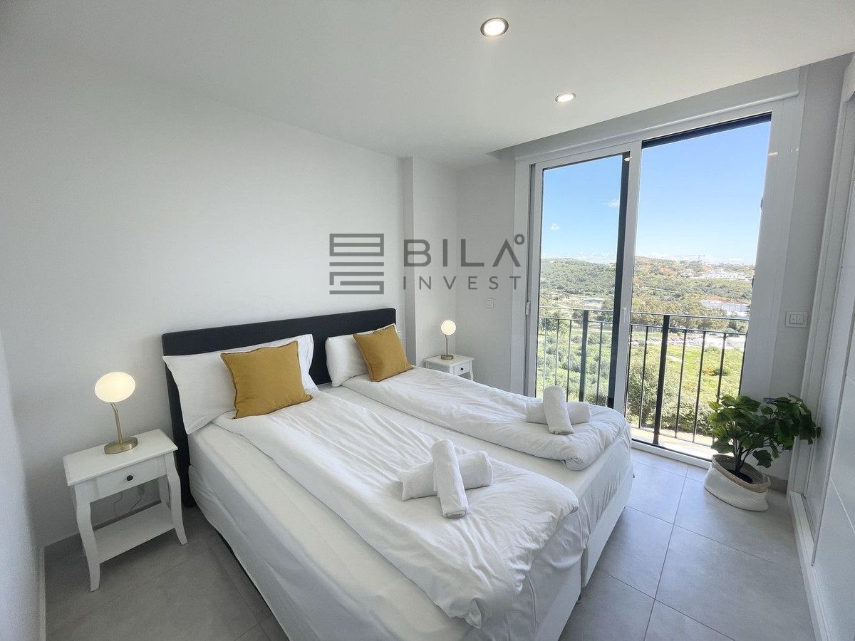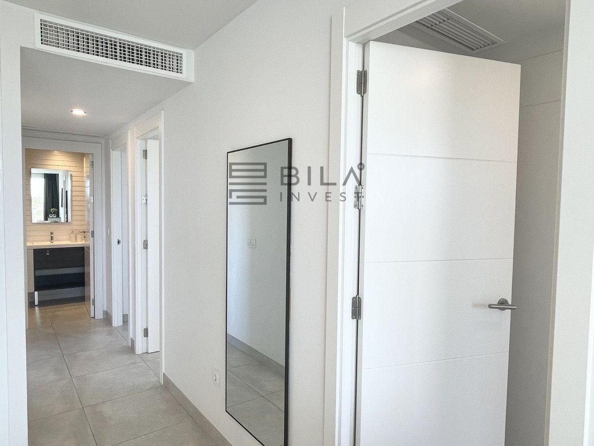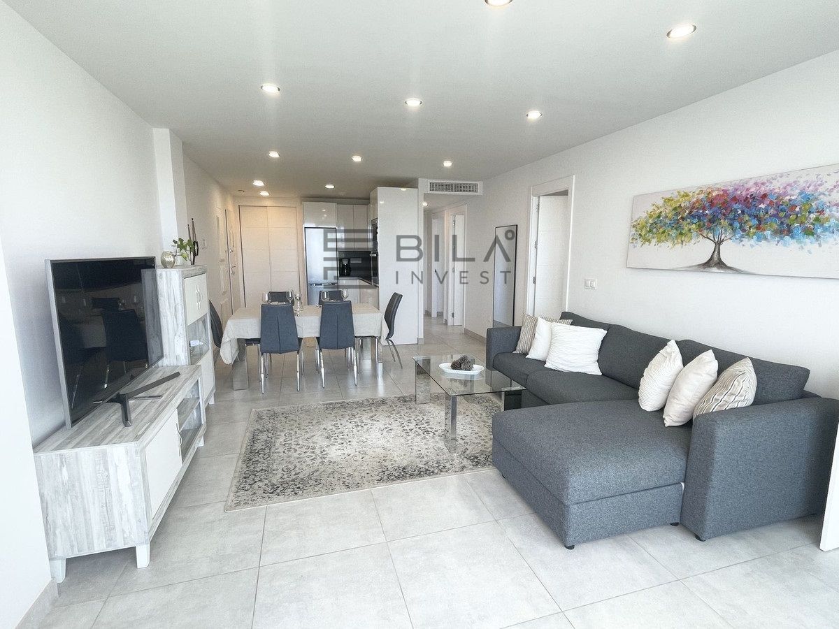 El apartamento se encuentra en la primera planta con acceso mediante ascensor y entrada directa desde la plaza de aparcamiento privada. Al entrar, te recibe un espacio abierto y luminoso donde la cocina y el salón se integran perfectamente y dan salida a la terraza con sol de mañana. Uno de los dormitorios es en suite con baño privado, mientras que los otros dos comparten un baño adicional. Todos los dormitorios cuentan con armarios empotrados, vistas a las montañas y aire acondicionado instalado en toda la vivienda para mayor confort durante todo el año. Todas las ventanas y puertas de cristal son de doble acristalamiento.