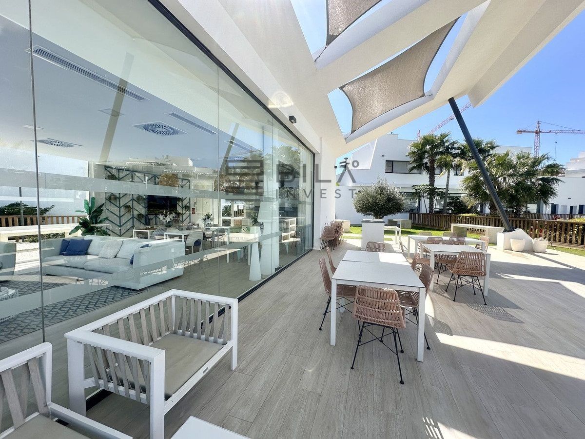 La comunidad es cerrada y cuenta con conserje durante todo el día. Los jardines bien cuidados incluyen tres piscinas exteriores, piscina cubierta, salón social con zona de barbacoa, sauna, gimnasio, pista de pádel y un área de juegos para los más pequeños.