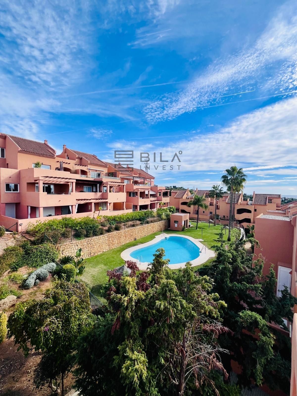 OPORTUNIDAD de adquirir un espectacular ático de 2 dormitorios y 2 baños con VISTAS PANORÁMICAS AL MAR en el prestigioso y tranquilo campo de golf Los Lagos de Santa María, Elviria, Marbella.