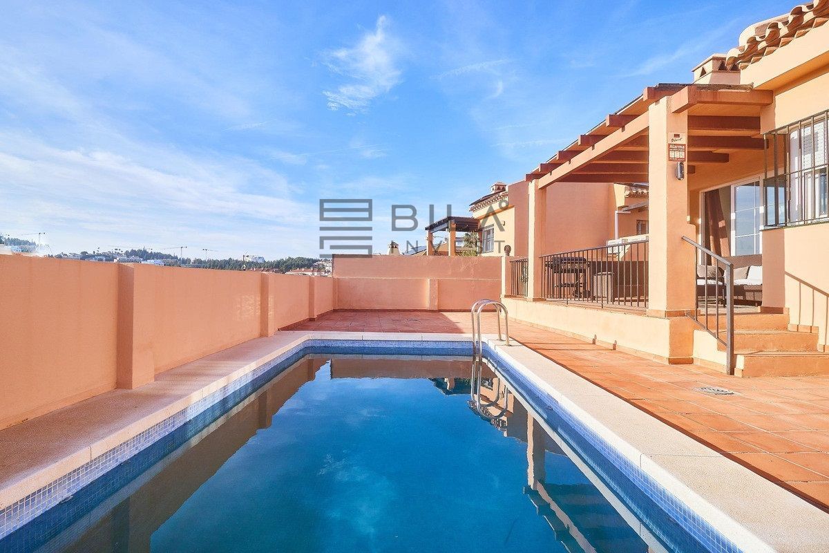 Desde esta planta accedemos a una amplia terraza con pérgola, ideal para desayunos al sol, comidas familiares o momentos de relax. Esta terraza conecta directamente con el patio privado, perfecto para disfrutar de la piscina, zonas exteriores y el clima de la Costa del Sol durante todo el año.