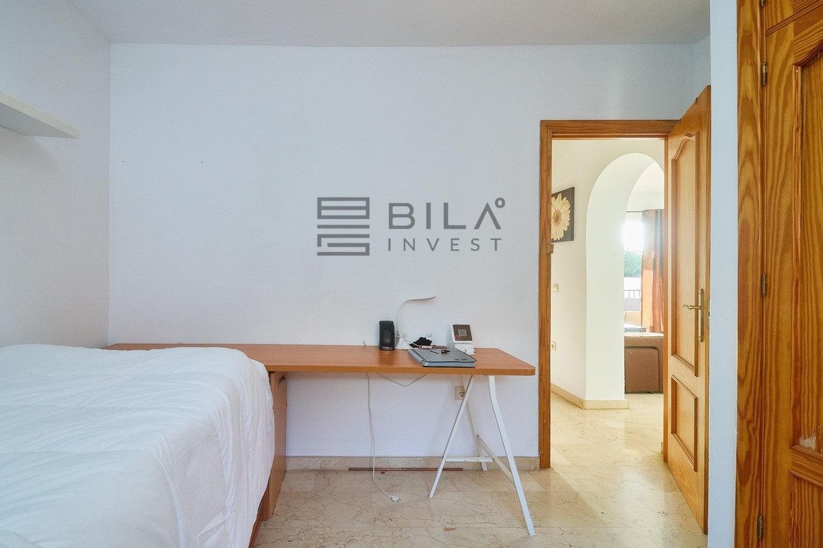 Dos dormitorios dobles con armarios empotrados , Uno con vistas al jardín delantero y el otro con vistas a la piscina y vista parcial al mar