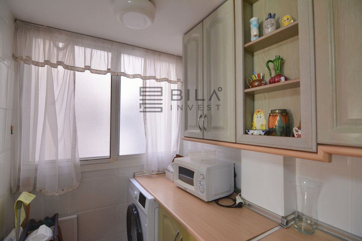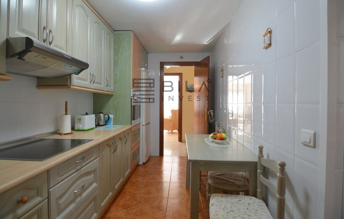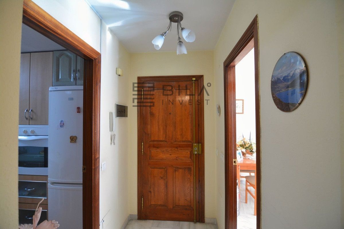 Cuenta con una amplia entrada, un salón muy luminoso orientado al sur con acceso a un balcón, y una cocina independiente con mesa y ventana.
