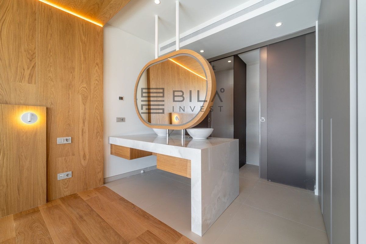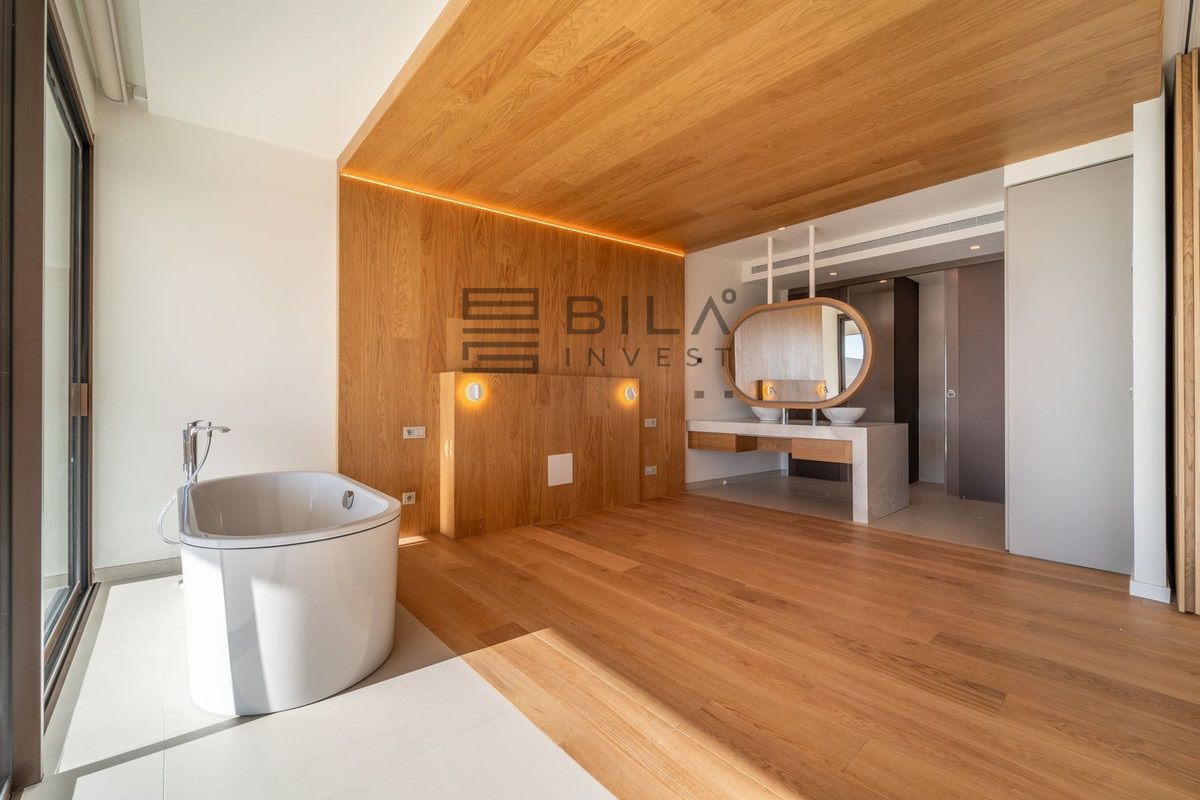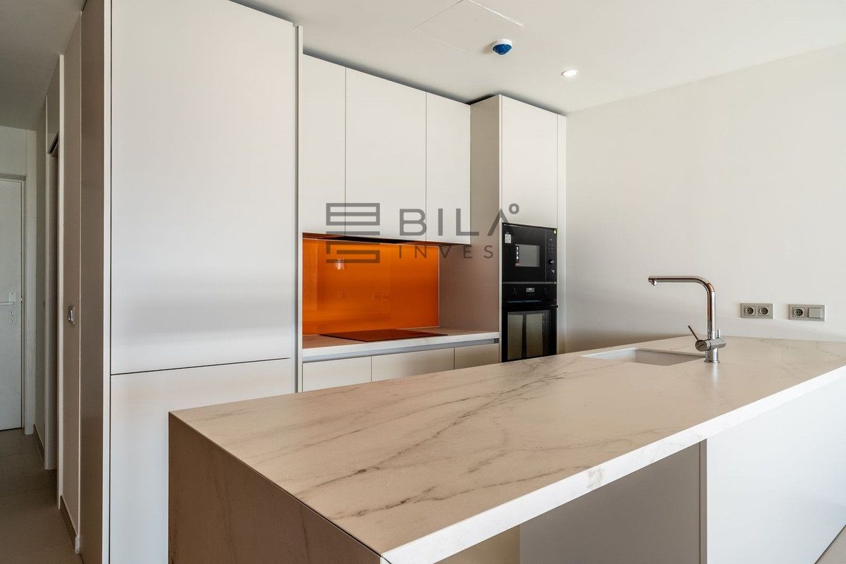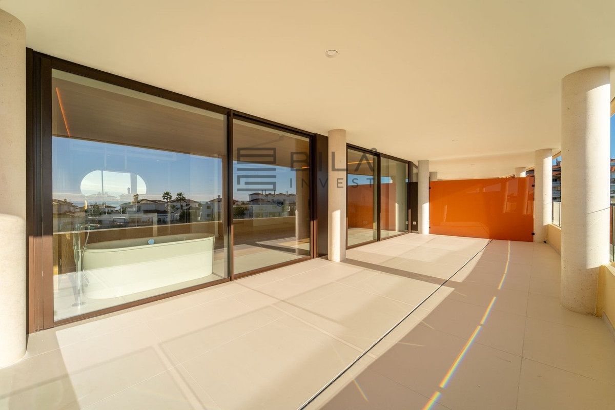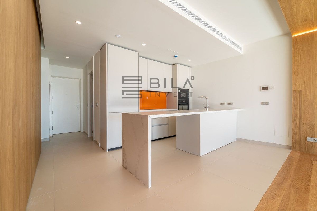 Apartamento de lujo completamente nuevo con orientación sureste, ubicado en la exclusiva urbanización, con 2 dormitorios, 2 baños, amplio salón-comedor, cocina abierta totalmente amueblada y equipada con electrodomésticos Bosch, zona de lavandería con lavadora/secadora, gran terraza de 40 m² con bonitas vistas al mar.