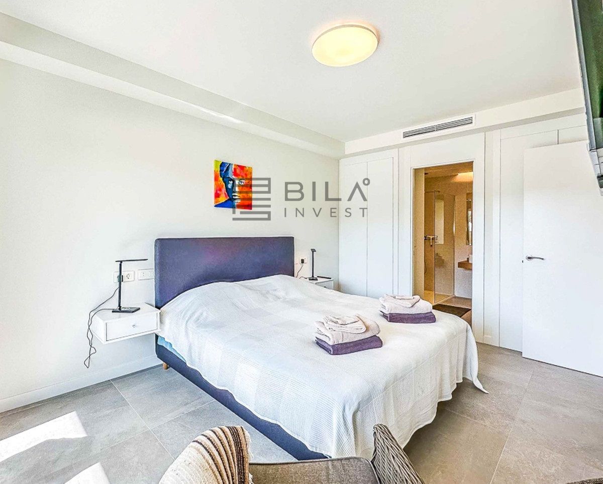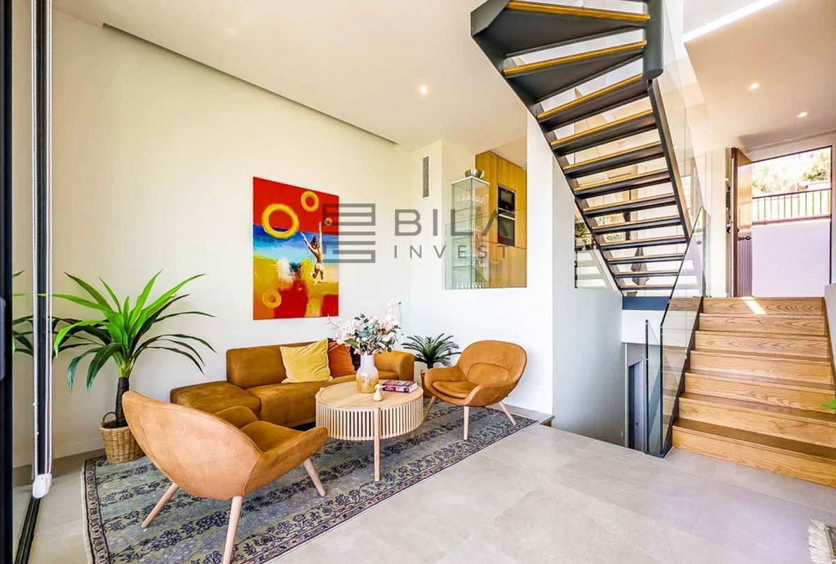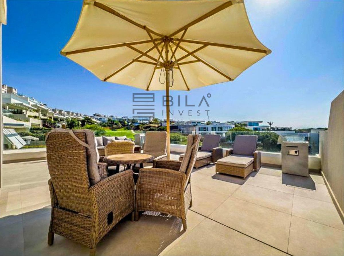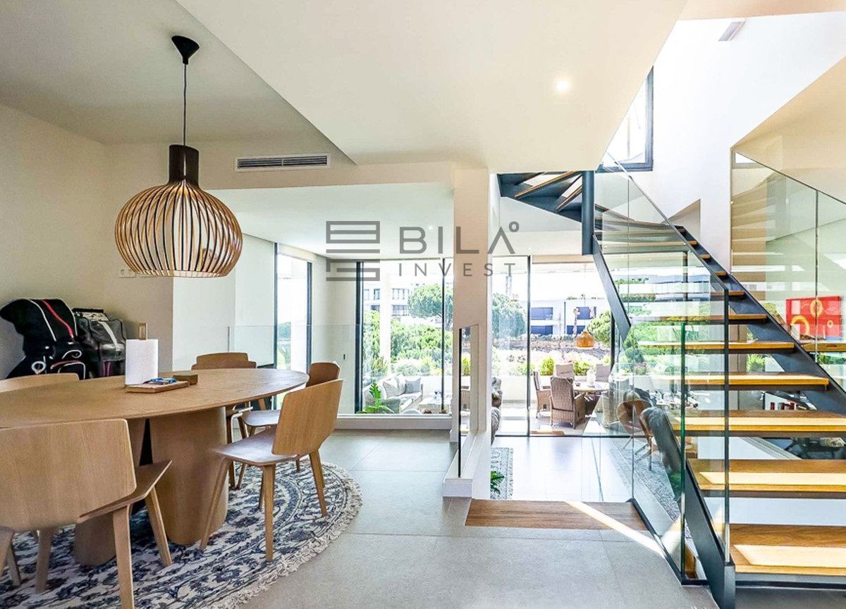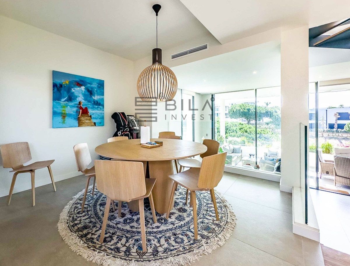 Distribuida en tres niveles y 181 m², la casa ofrece espacios luminosos, ventanales de suelo a techo y unas vistas impresionantes al Mediterráneo, al campo de golf y a las montañas. Cuenta con tres amplios dormitorios con baños en suite, una cocina totalmente equipada, salón-comedor de planta abierta, piscina privada y varias terrazas que suman 160 m², incluyendo un solárium en la azotea ideal para puestas de sol inolvidables.