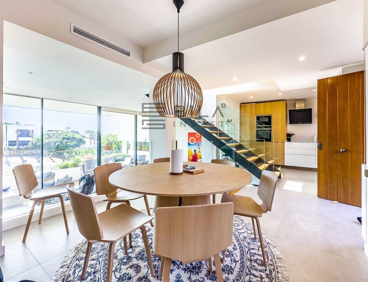 Este adosado de diseño arquitectónico forma parte de la prestigiosa urbanización The Cape en Cabopino, Marbella Este. Con una posición privilegiada en primera línea de golf y a solo 800 m de la playa y el puerto deportivo de Cabopino, la vivienda combina tranquilidad, confort y un diseño moderno de inspiración escandinava.